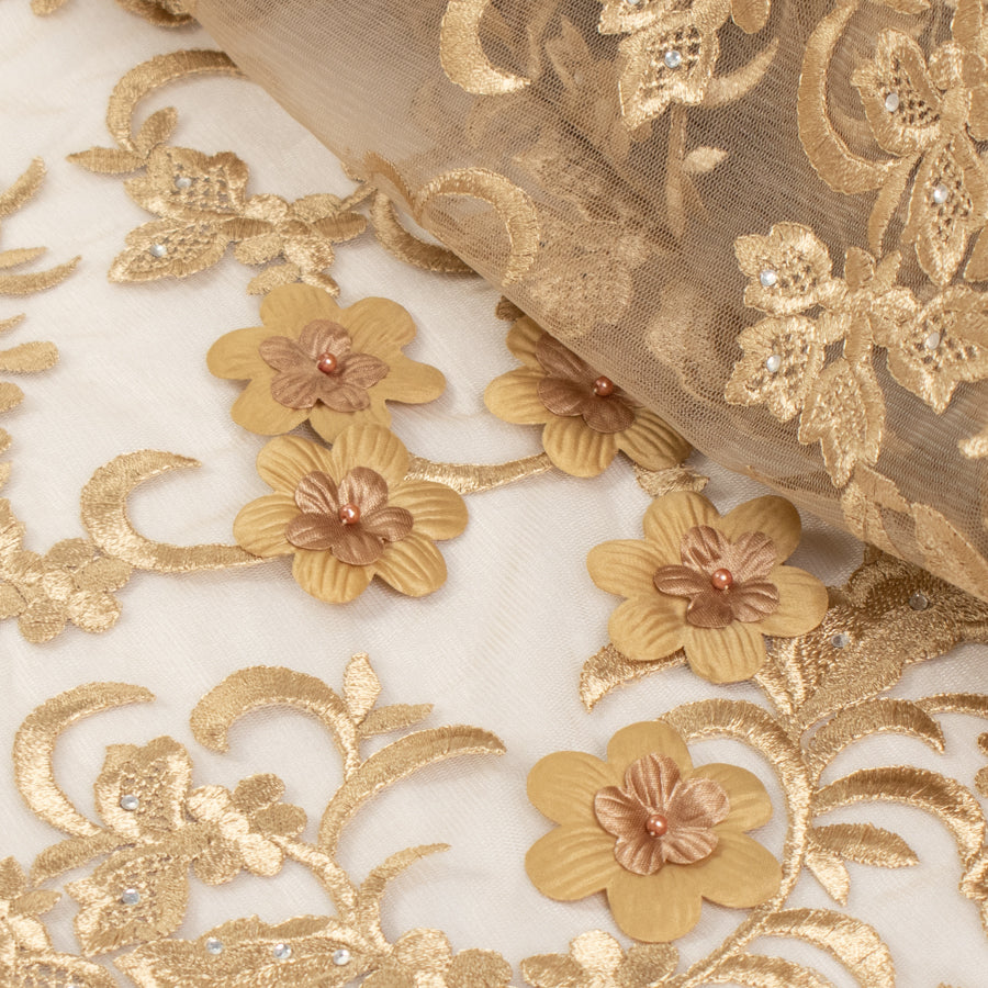 3D Flower with Gemstone Jewel Lace Design-5 Gold