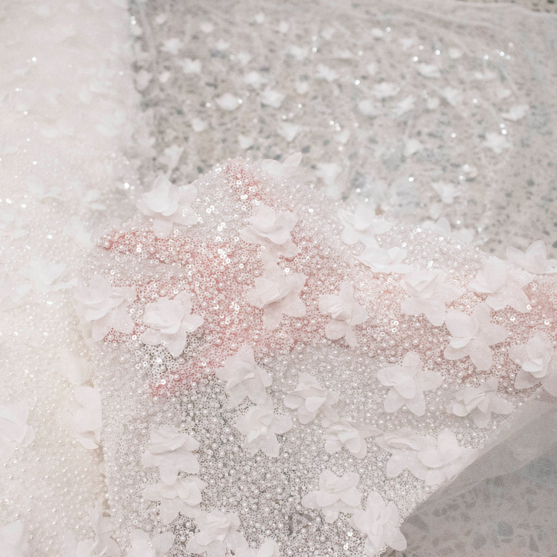 Luxury Pearl & Crystal Beaded Sequins Mesh Lace – SS41901 White 3D Flowers Ombre Heavy Border