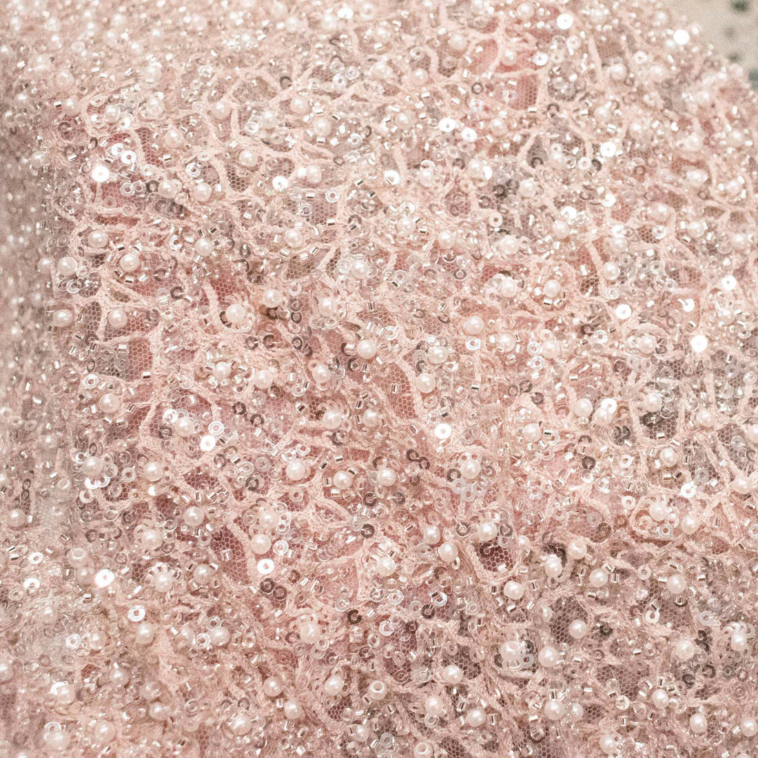 Luxury Pearl & Crystal Beaded Sequins Mesh Lace – SS41902 Peach Corded Net
