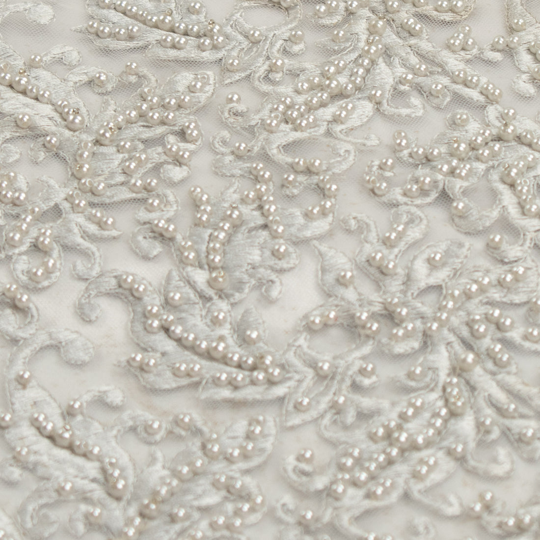 Heavy Embroidered Pearl Beaded Chantilly Lace Oyster Pearl