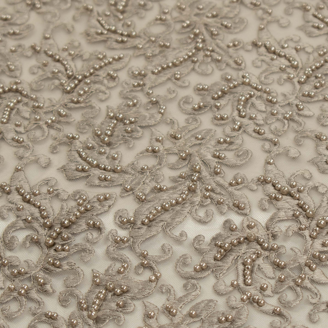 Heavy Embroidered Pearl Beaded Chantilly Lace Dusty Mocha