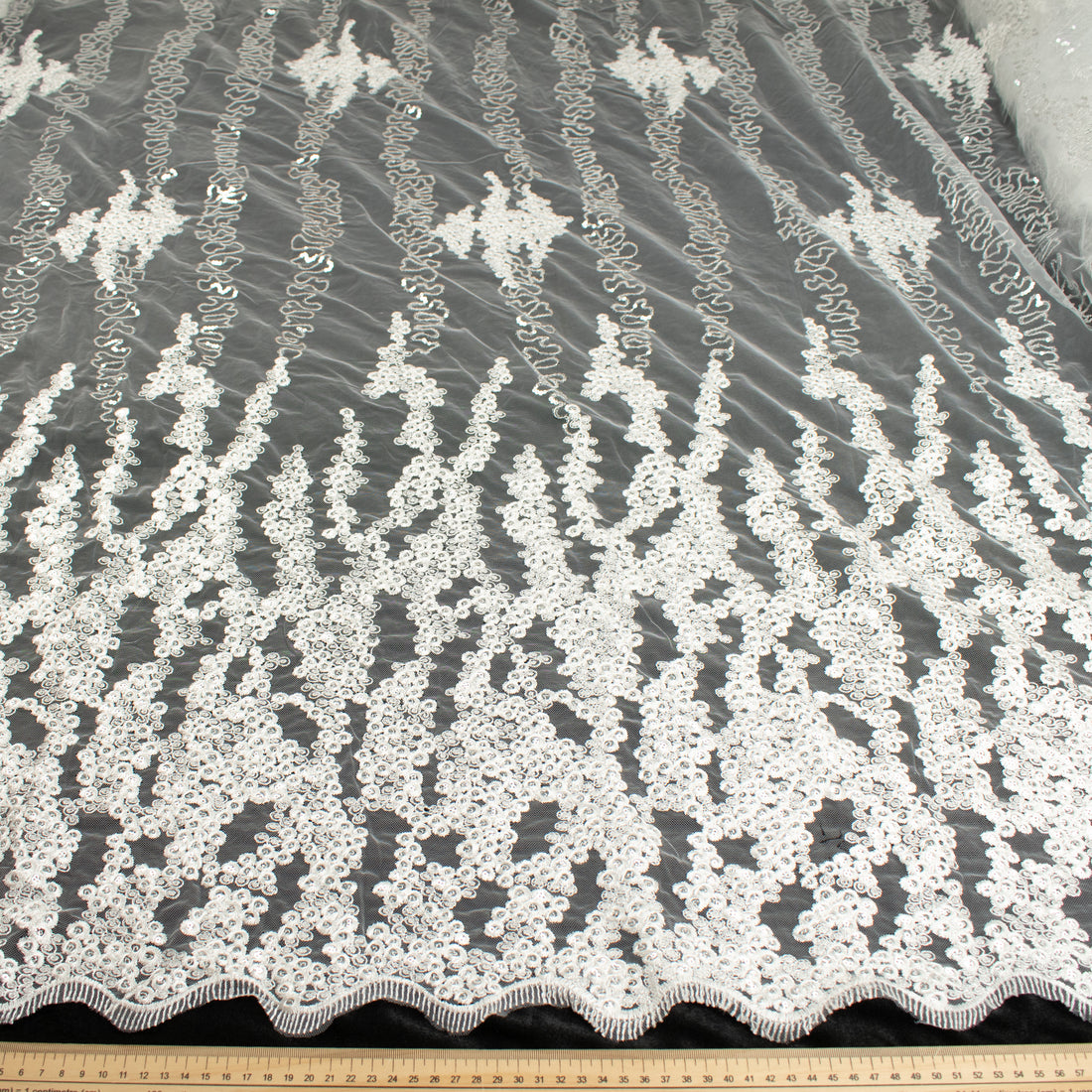 Heavy Embroidered Pearl Chantilly Lace 125CM Wide $149.99/MPriced per 25cm. For example to order 2...