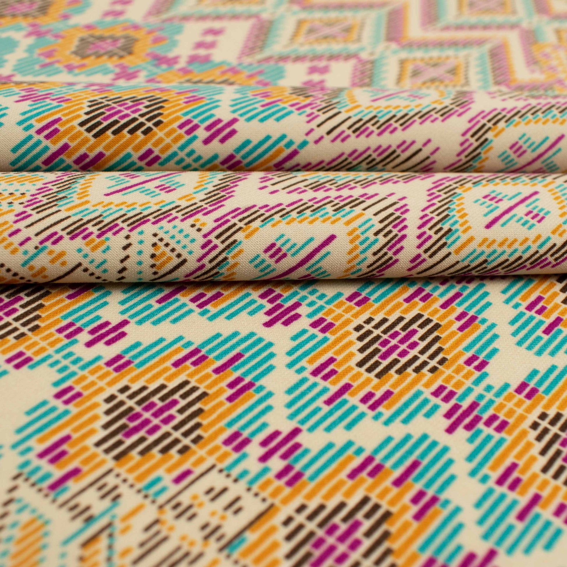 A beautiful selection of 112cm wide printed crepe in assorted florals, abstracts and geometrics – ideal for flowing dresses, tops, skirts, blouses, shirts and palazzo pants. The printing is sharp, clear and very lifelike.