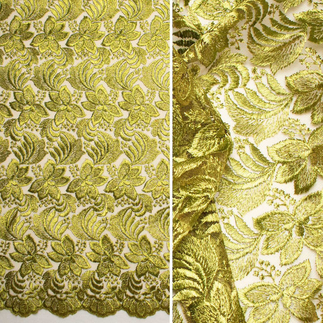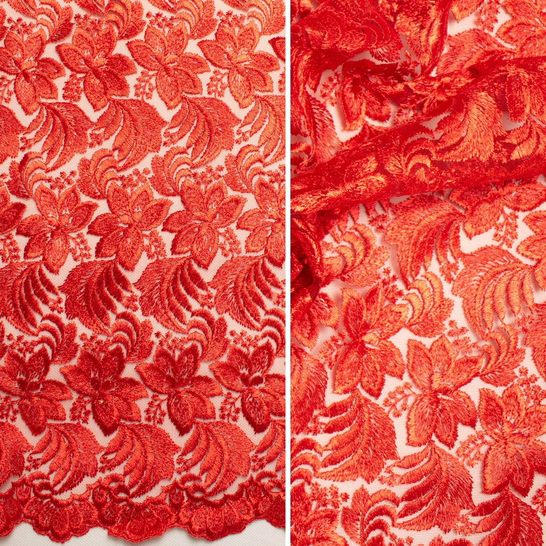 Content: 100% Nylon Width: 44”/112cm Weight: 180GSM A densely Embroidered Lace on a tulle net backing with double...
