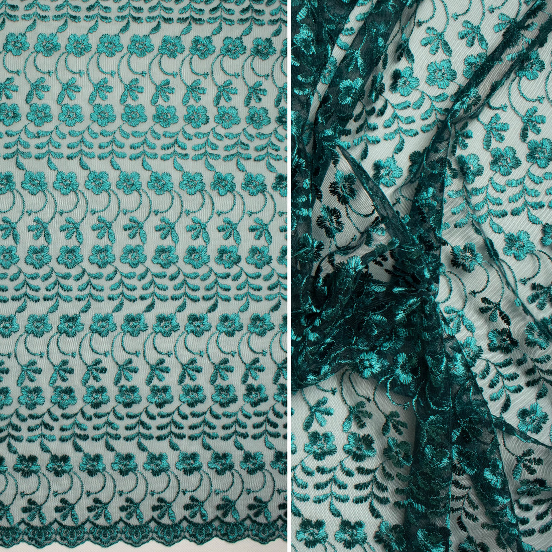 A beautiful 3D Embroidered Lace with Scalloped Edge Content: Polyester/ Nylon Width: 44”/112cm Weight: 180GSM A densely Embroidered...