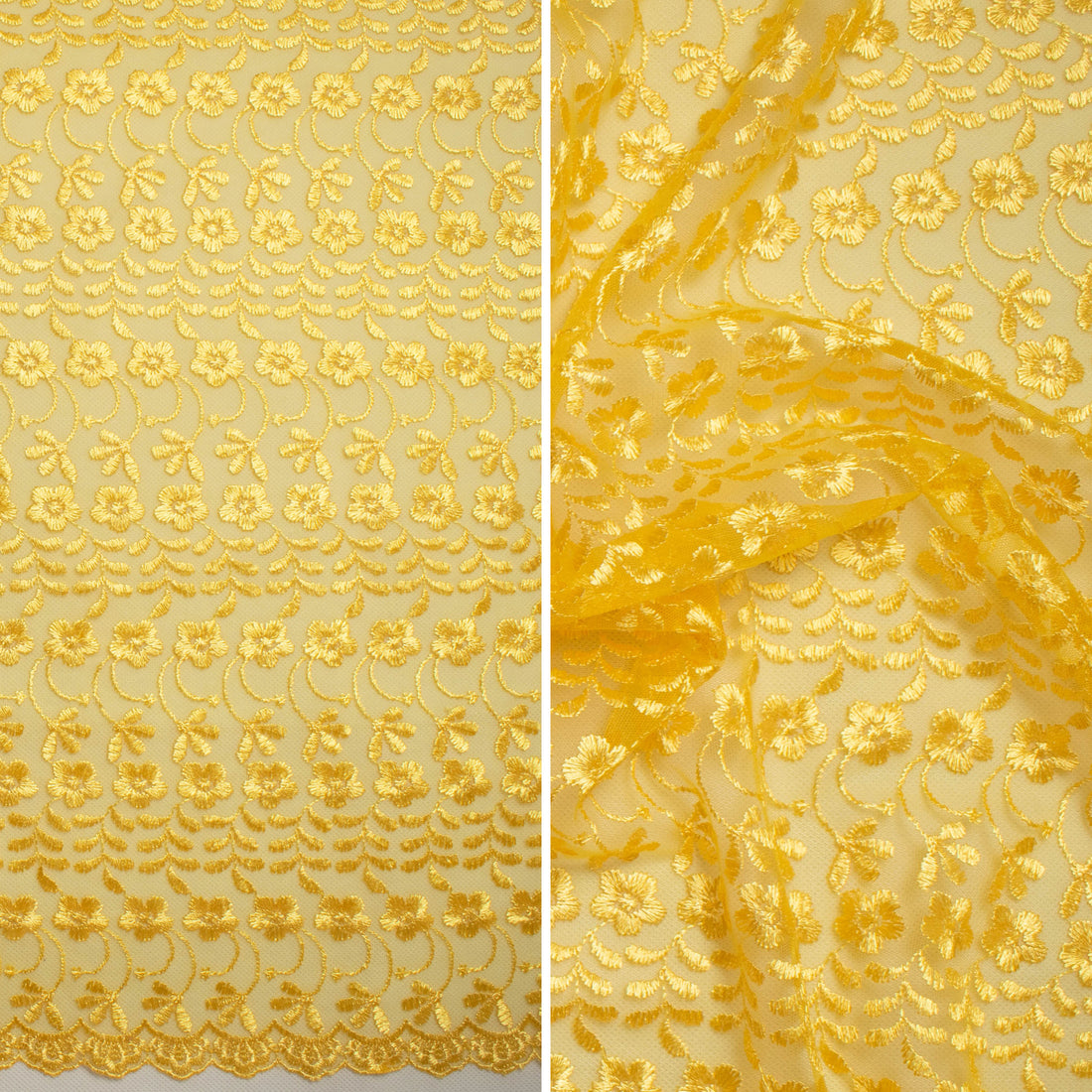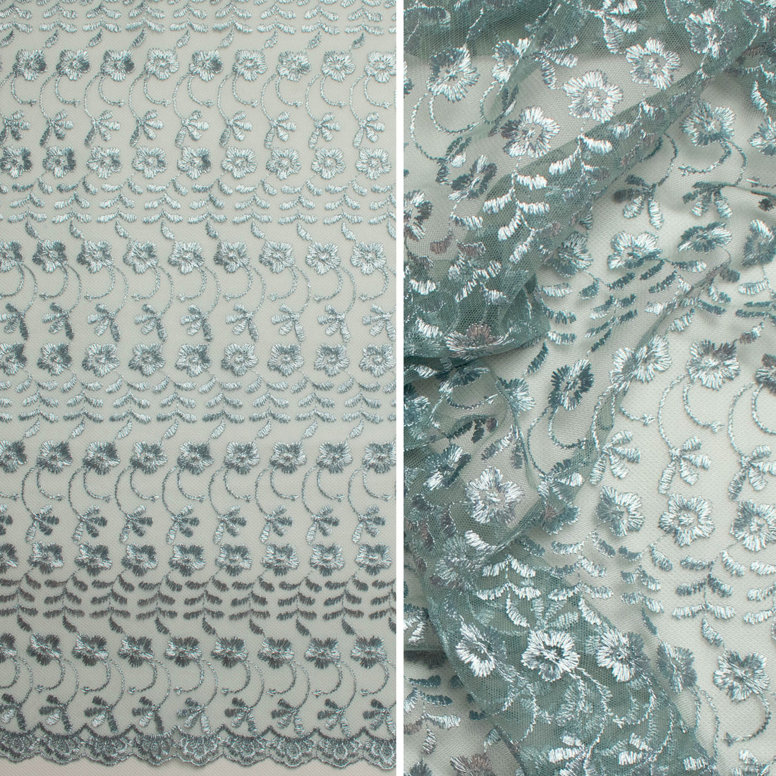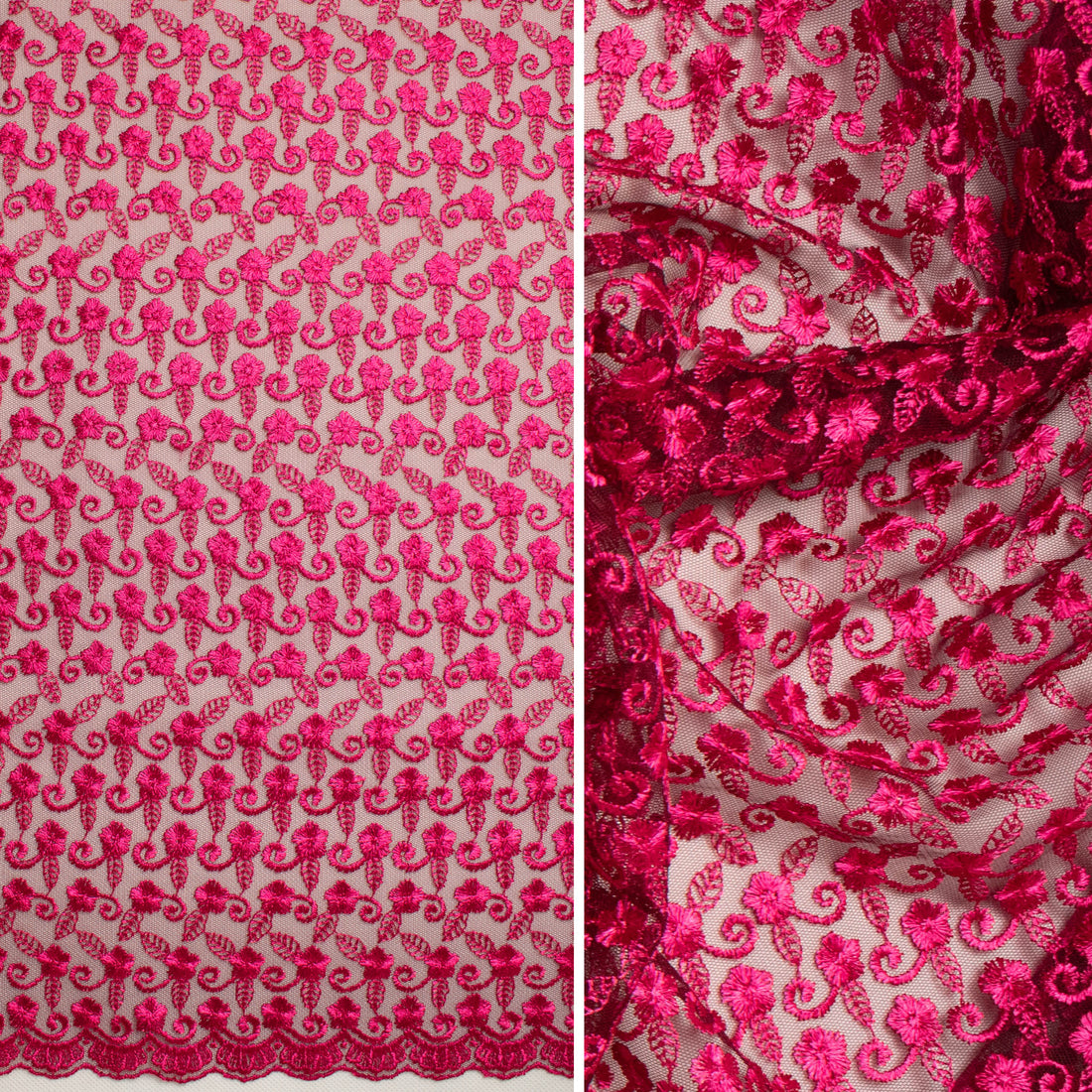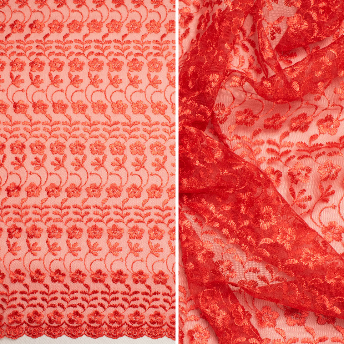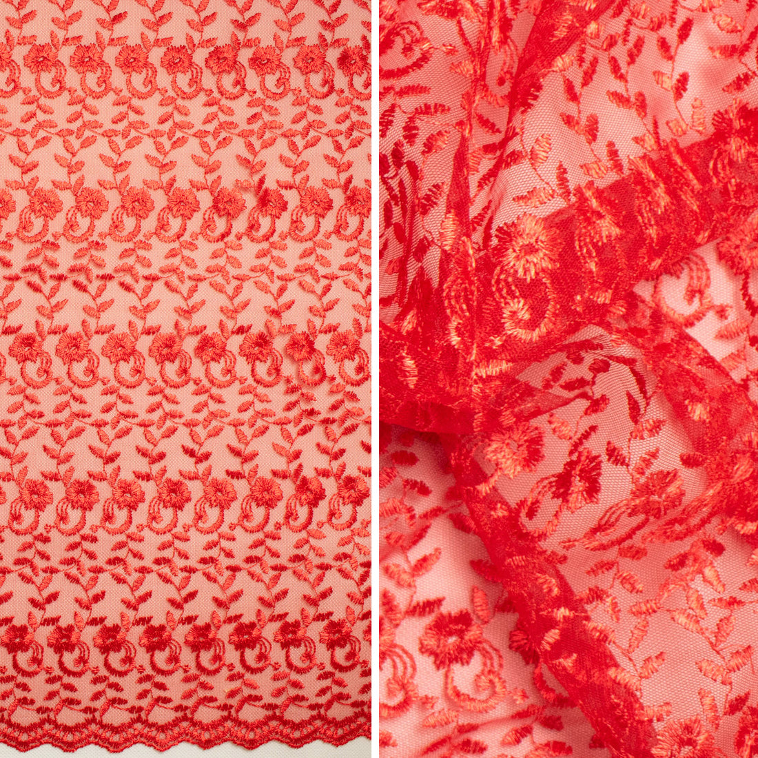 Content: 100% Nylon Width: 44”/112cm Weight: 180GSM A densely Embroidered Lace on a tulle net backing with double...