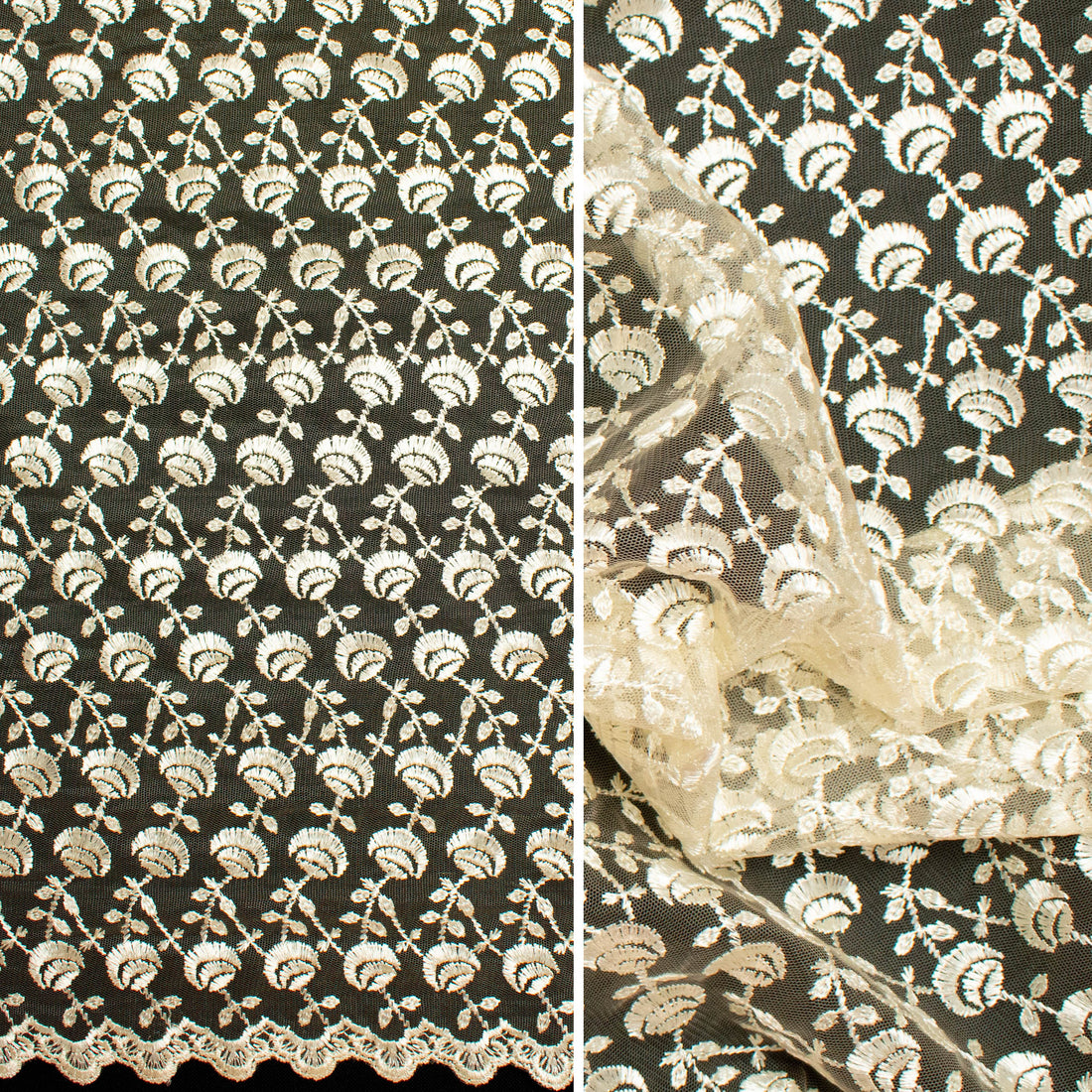 A beautiful 3D Embroidered Lace with Scalloped Edge Content: Polyester/ Nylon Width: 44”/112cm Weight: 180GSM A densely Embroidered...