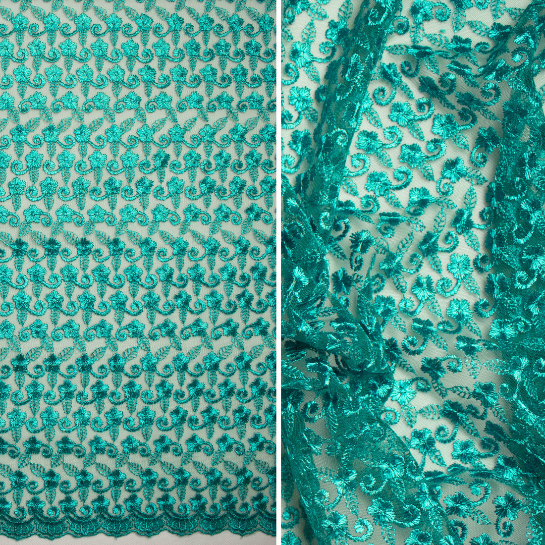 Content: 100% Nylon Width: 44”/112cm Weight: 180GSM A densely Embroidered Lace on a tulle net backing with double...