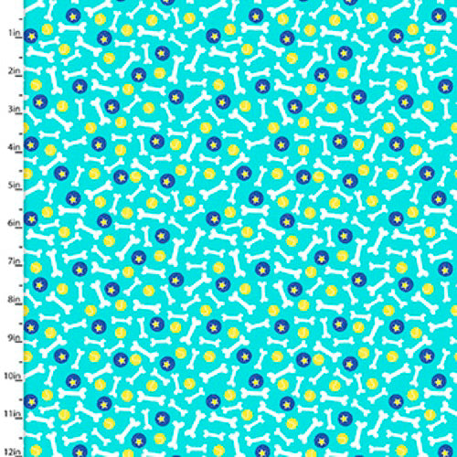 Fabric Editions Dog Day Bones and Balls on Turquoise Cotton Prints
