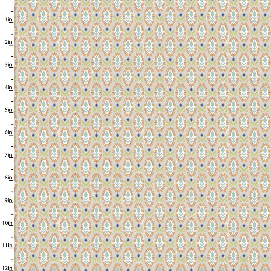 Fabric Editions Quentin Orange Floral Dots on Tan Cotton Prints