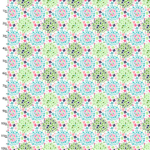 Fabric Editions Hello Spring Colour Puff on White Cotton Prints