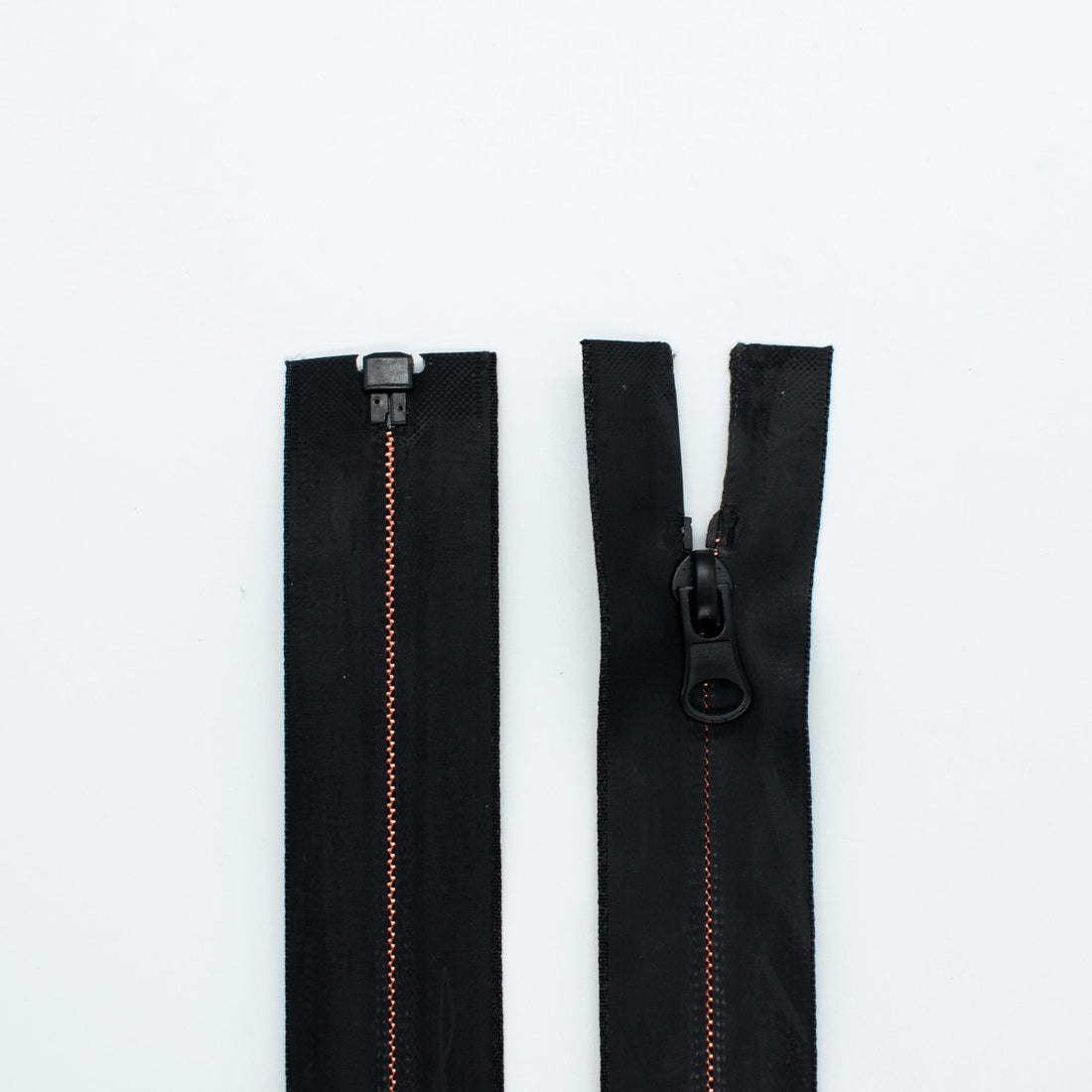 Open End Water Resistant Rubber Tube Coil Invisible Zip 45mm Black & Rose Gold