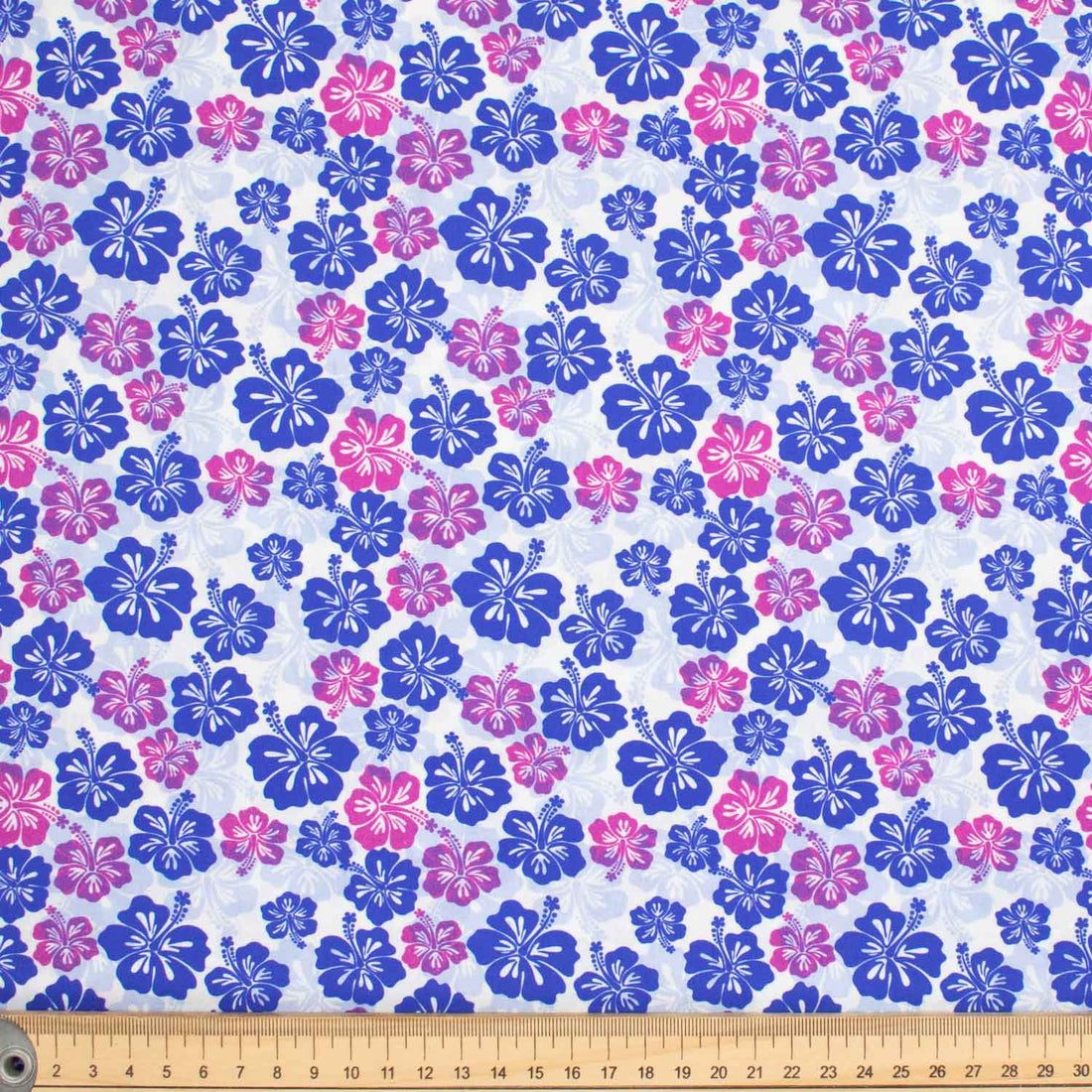 Hawaii Style Collection #17 Blue & Purple Poppy Flowers on White Cotton Prints