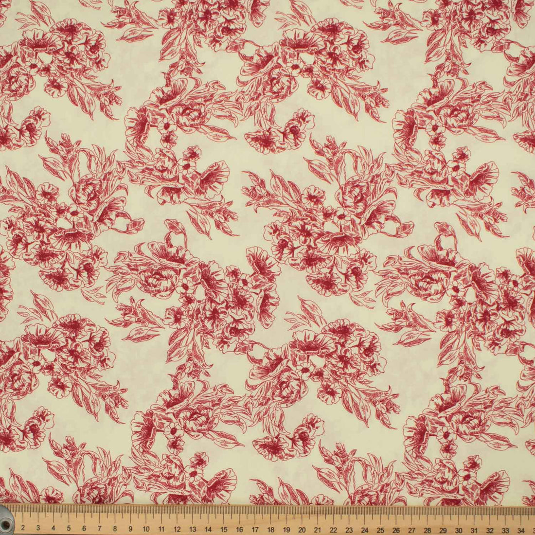 Victoria Red Collection #06 Sketch Flower on Cream Cotton Prints
