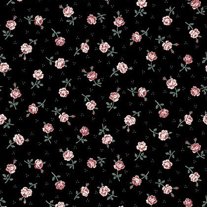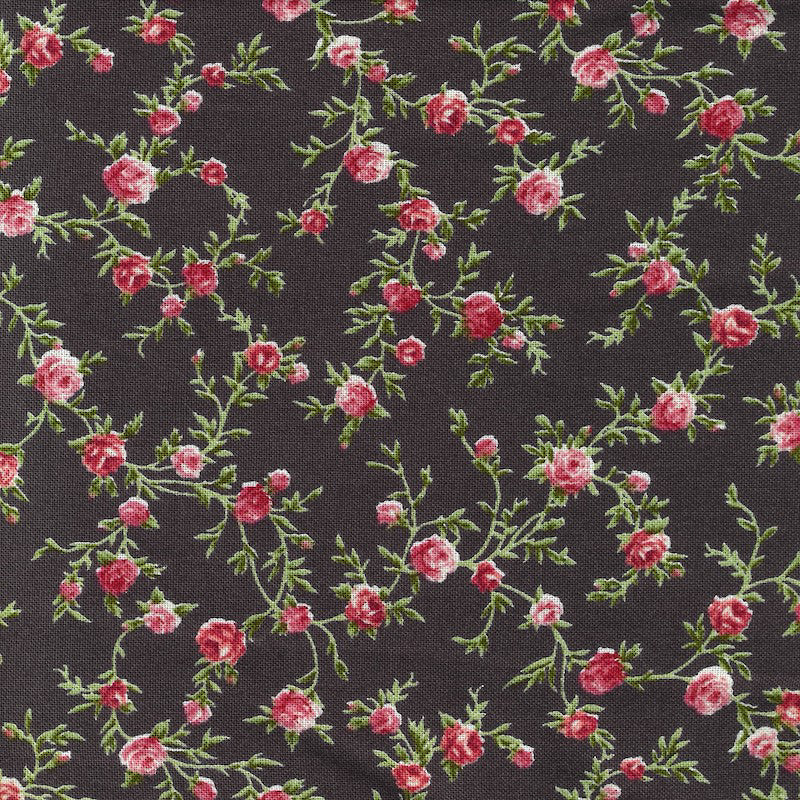 Stof Fabrics Ruby Rose Black Small Roses Cotton Prints