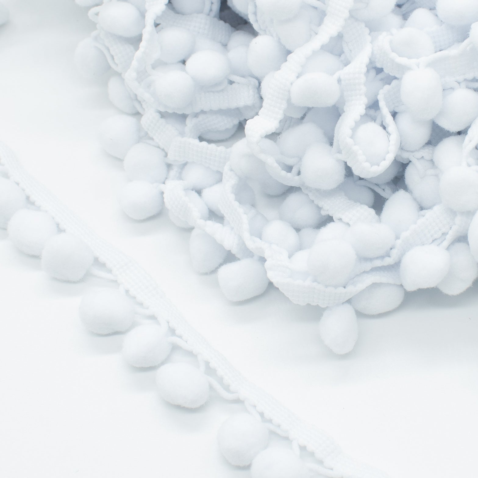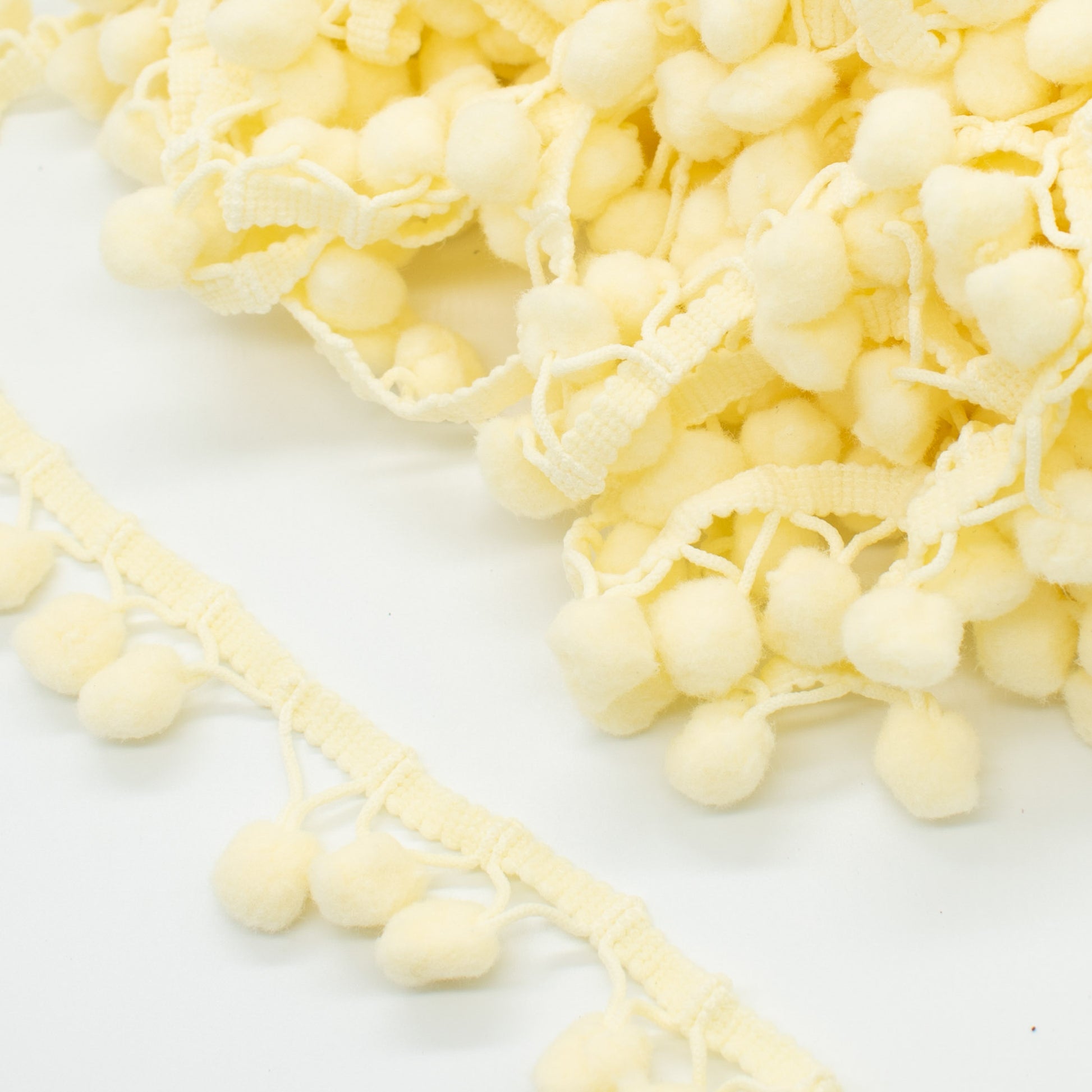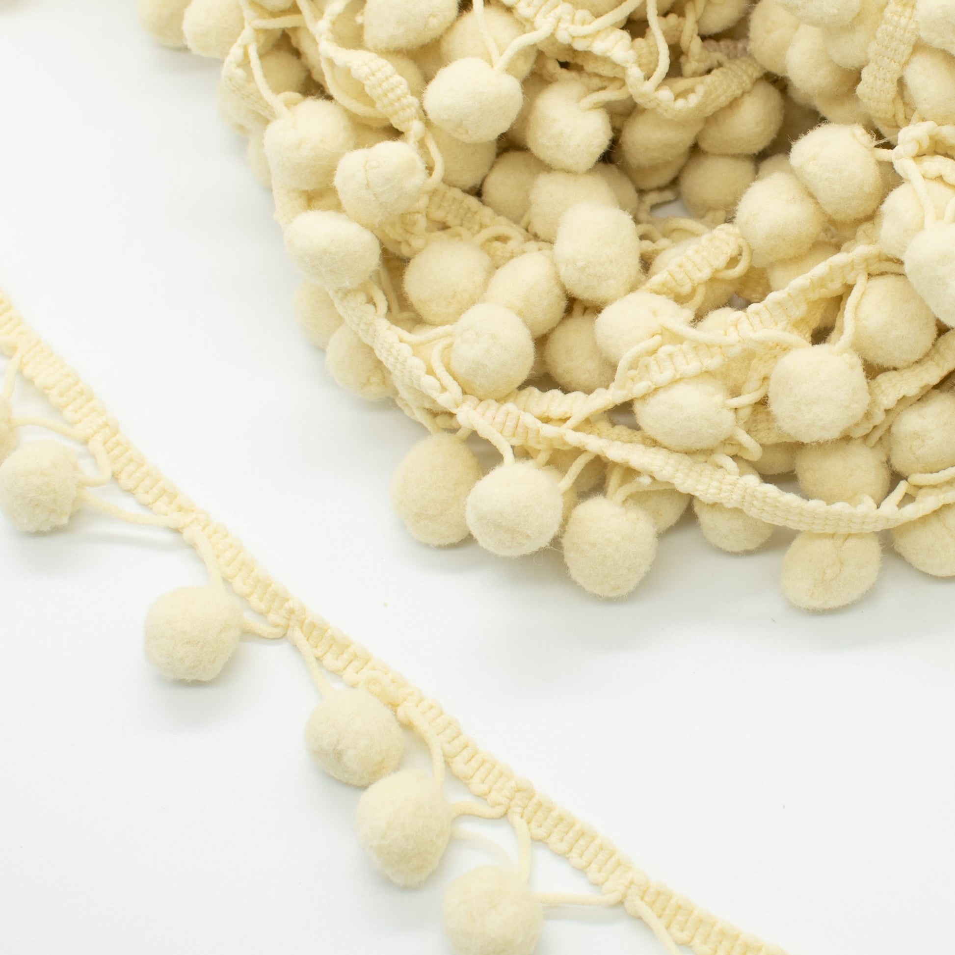 A classic pom pom tape designed to be used in any soft furnishings area. Can be used around cushions, on tablecloths, along the base of blinds and pelmets.
