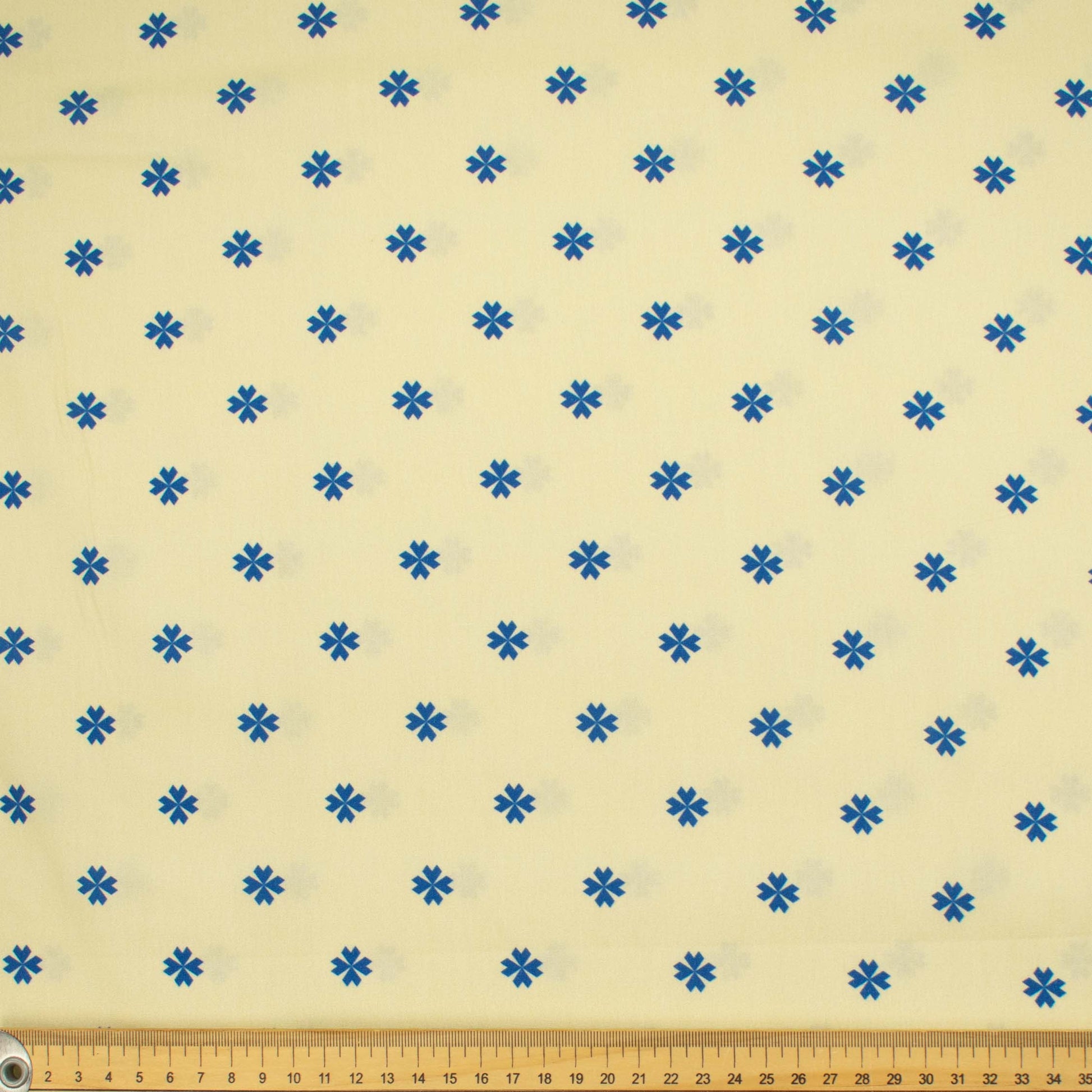 Country Side Collection #19 Blue Geometric Floral on Pale Yellow Cotton Prints