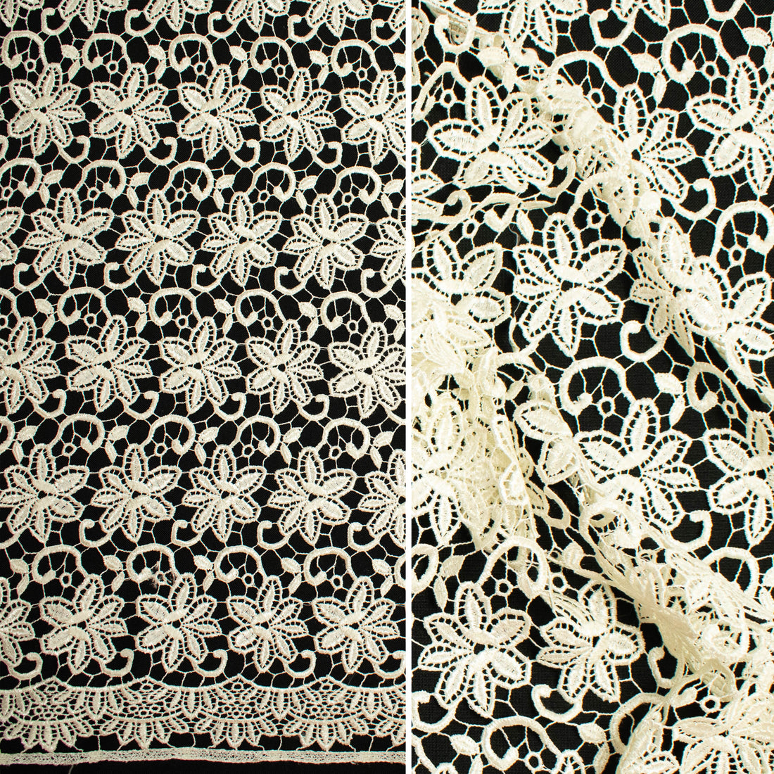 Content: 100% Polyester Width: 118cm Weight: 215GSM The Guipure lace design features beautiful floral motifs and intricate...