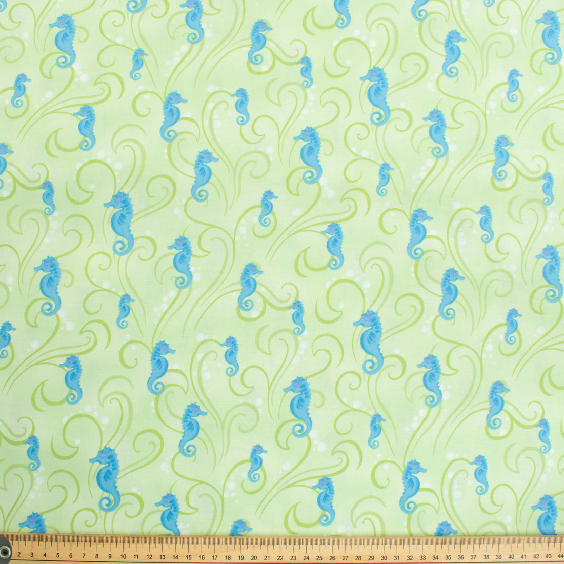 Hoffman California Fabrics Beach Babes Hippocampus on Green Cotton Prints