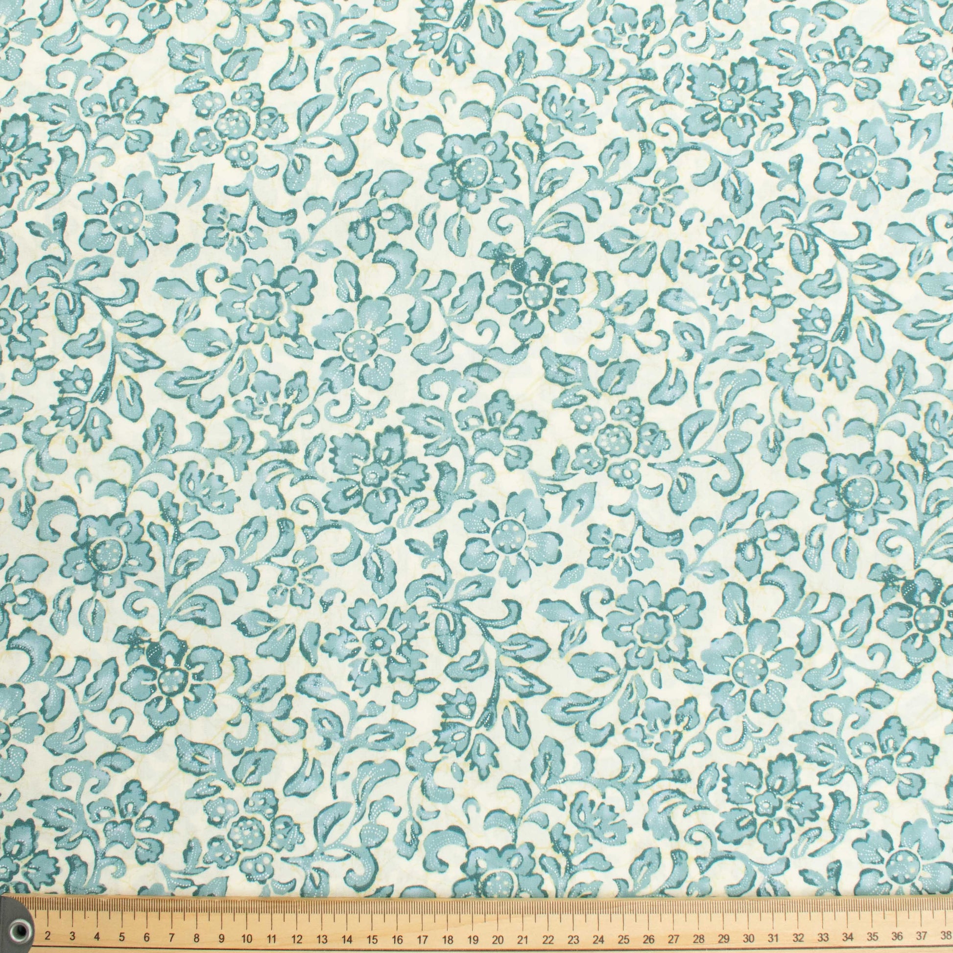 Hoffman California Fabrics Bali Paradise Turquoise Floral on Cream Cotton Prints