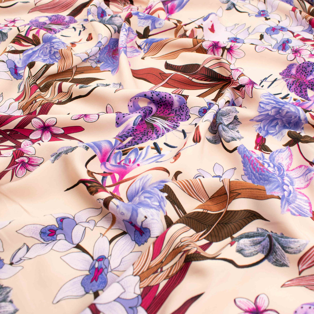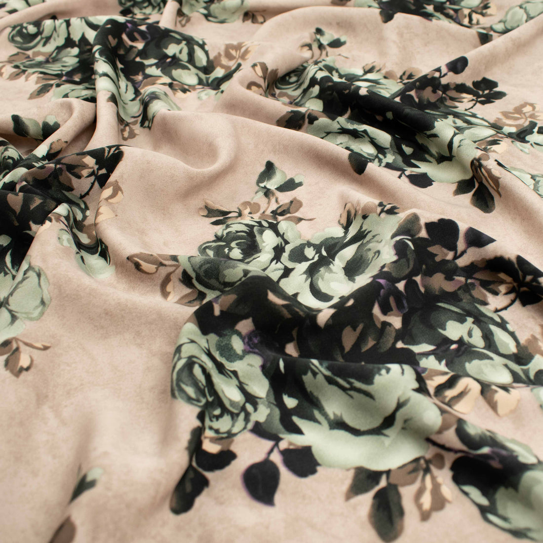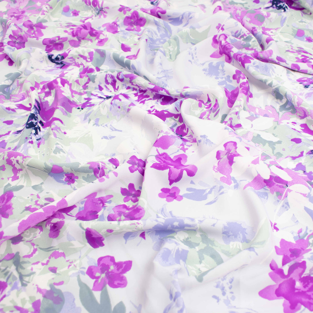 Content: 100% PolyesterWidth: 112CMWeight: 110GSM A beautiful selection of 112cm wide printed smooth peach crepe/faille in assorted florals, abstracts and...