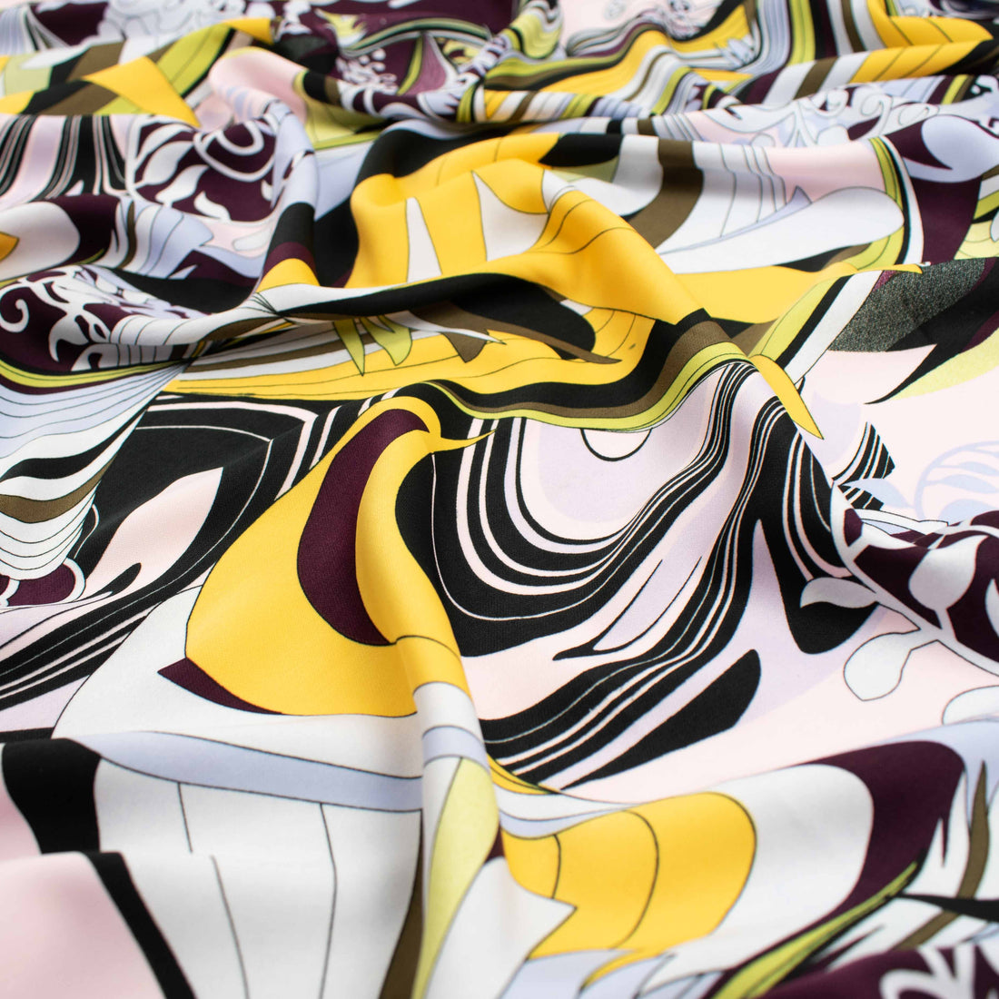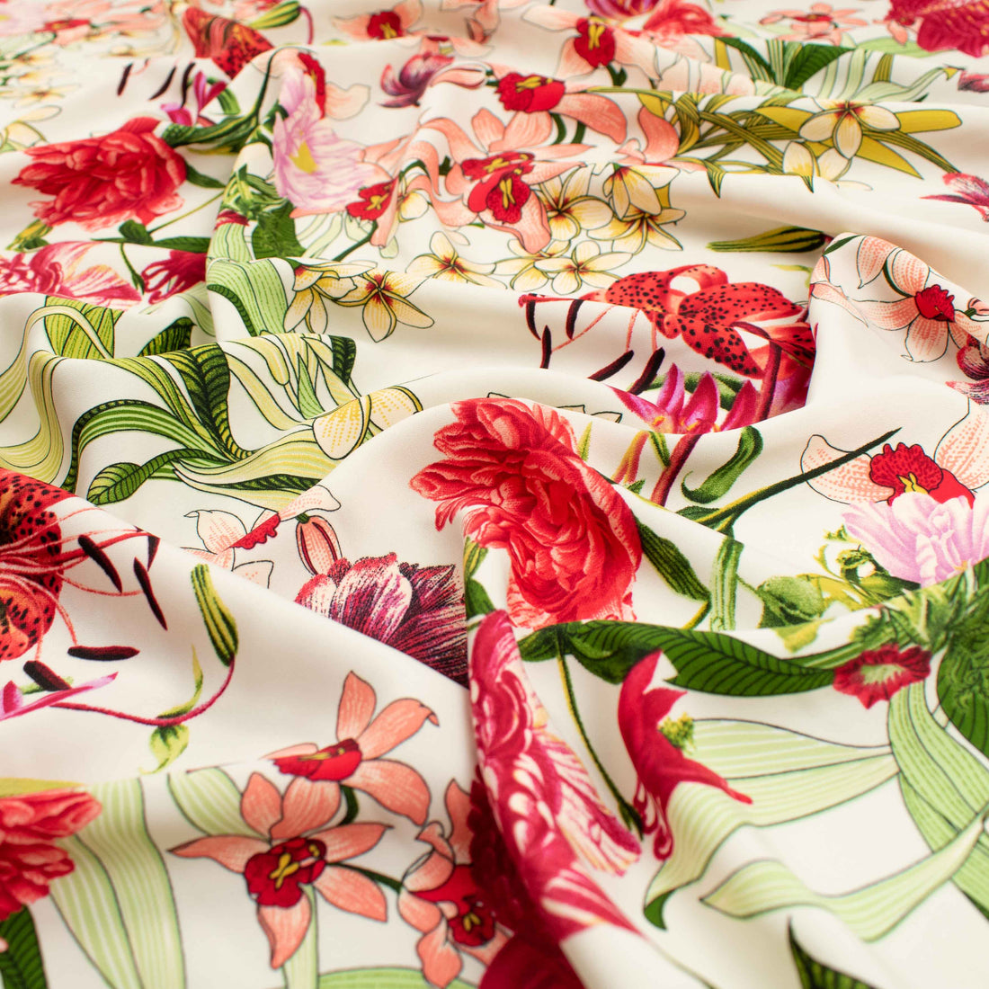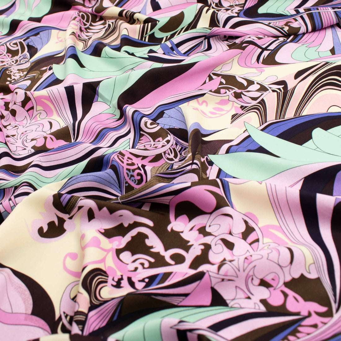 Content: 100% PolyesterWidth: 112CMWeight: 110GSM A beautiful selection of 112cm wide printed smooth peach crepe/faille in assorted florals, abstracts and...