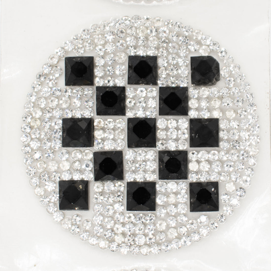 Black & Silver Round Geometric Diamante Iron-on Motif 2CM
