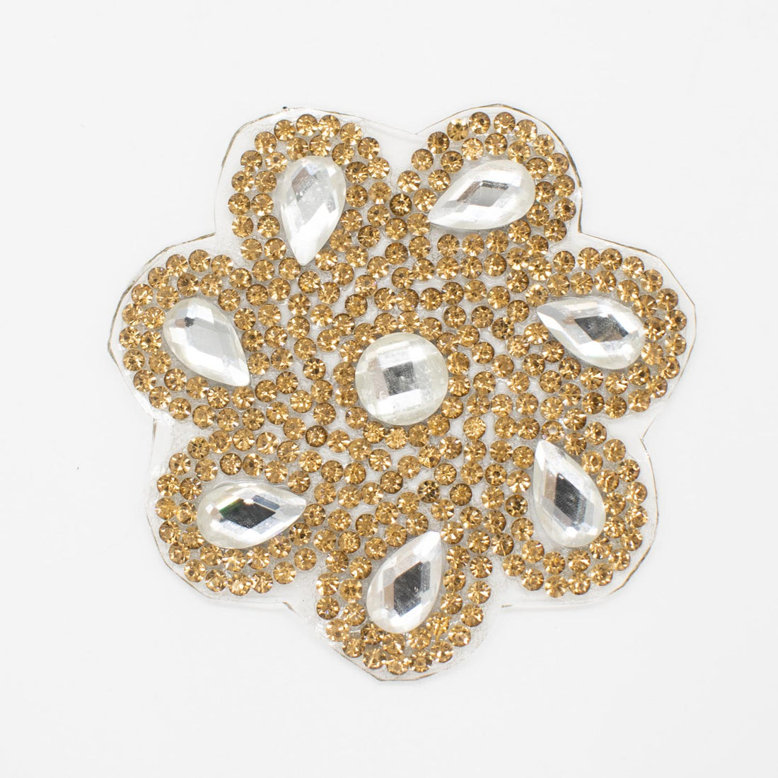 Gold Diamante Flower Iron-on Motif Design-MOT-AA07 LARGE 10.5CM x 7.5CM