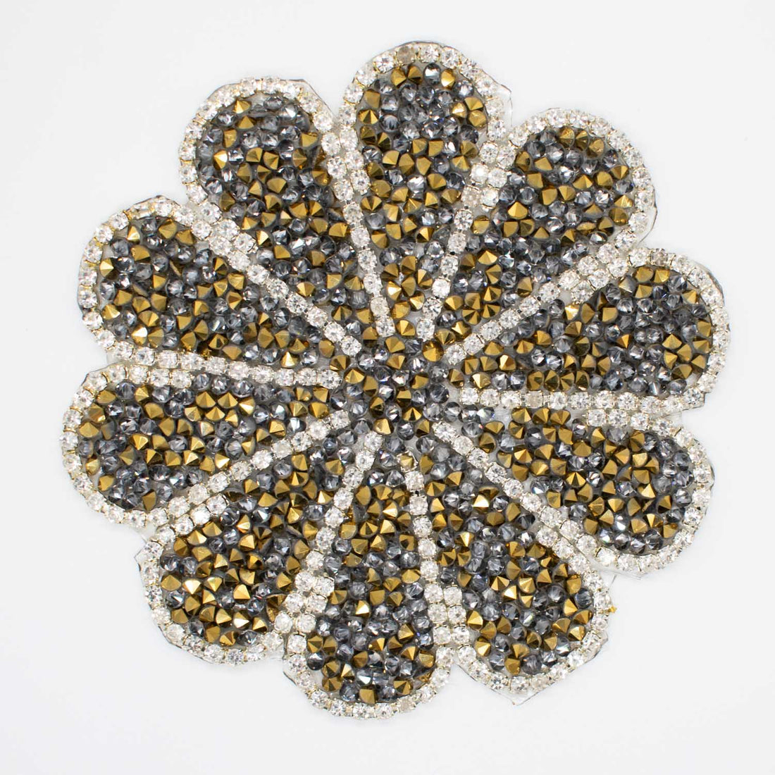 Gold & Silver Diamante Flower Iron-on Motif Design-MOT-AA06 9.5CM