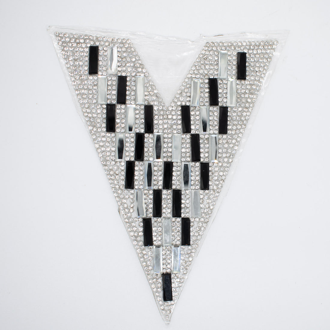 Silver & Black Diamante V Shape Iron-on Motif Design-MOT-AA04
