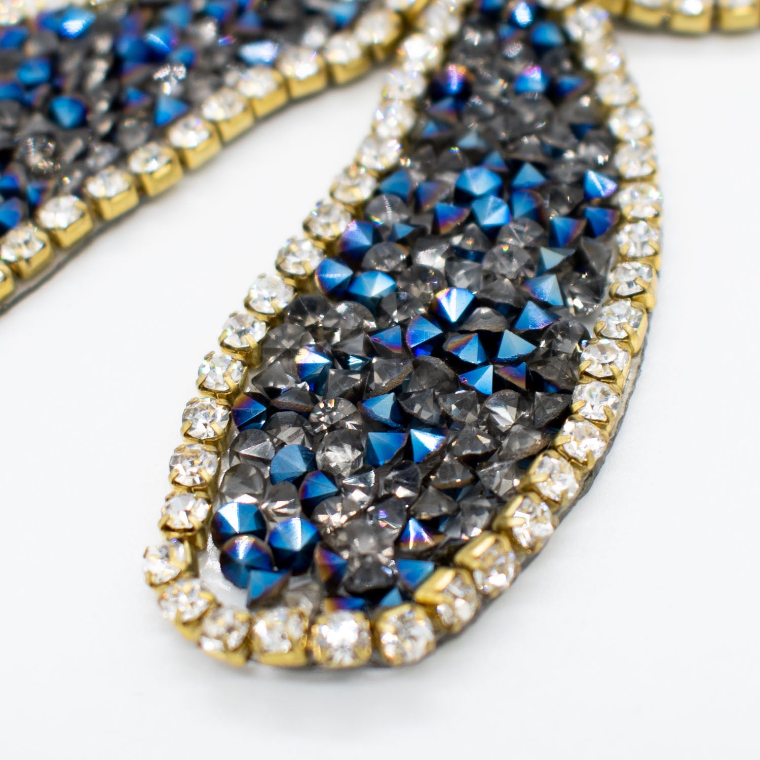 Blue & Silver Diamante Flower Iron-on Motif Design-MOT-AA03 9.5CM x 7.5CM