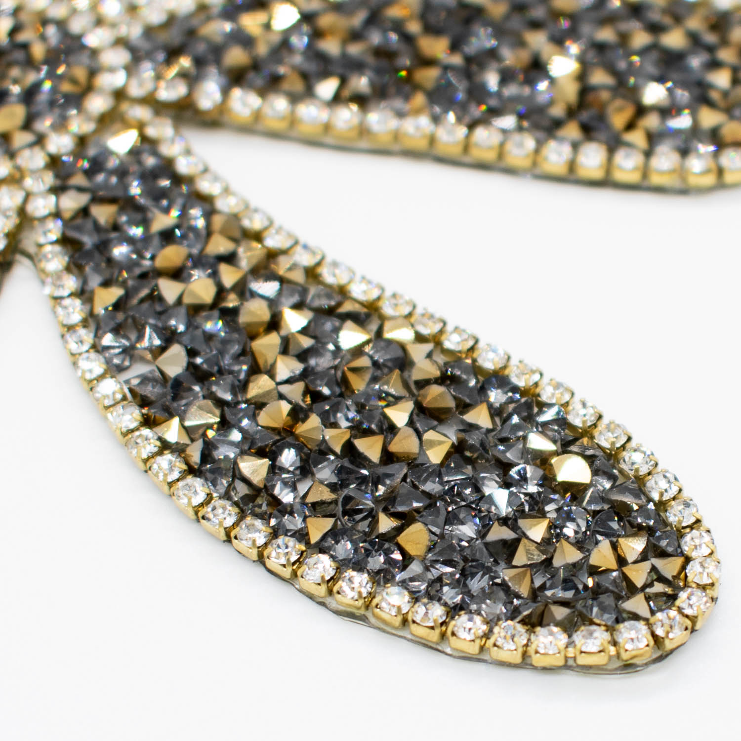 Gold & Silver Diamante Flower Iron-on Motif Design-MOT-AA03 9.5CM x 7.5CM