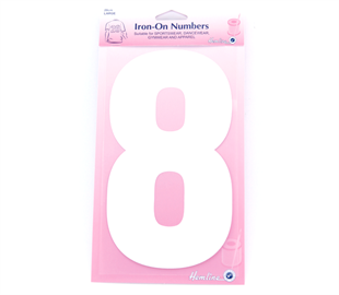 Iron on Number LARGE 20cm - White 8 Suitable for sportswear, dancewear, gym wear, and...