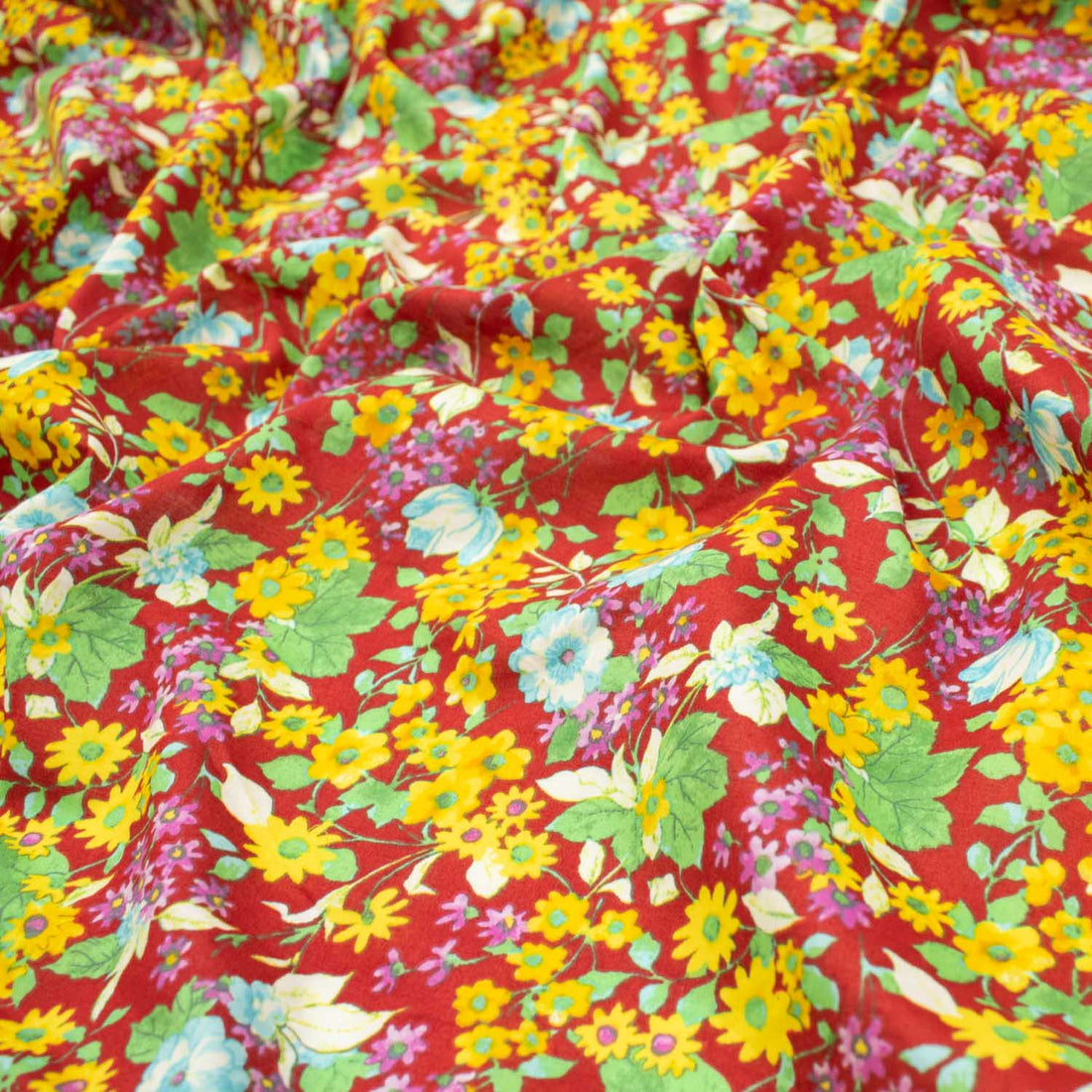Japanese Pure Cotton Lawn Prints Design-185 Multicolour Floral Bloom on Dark Red