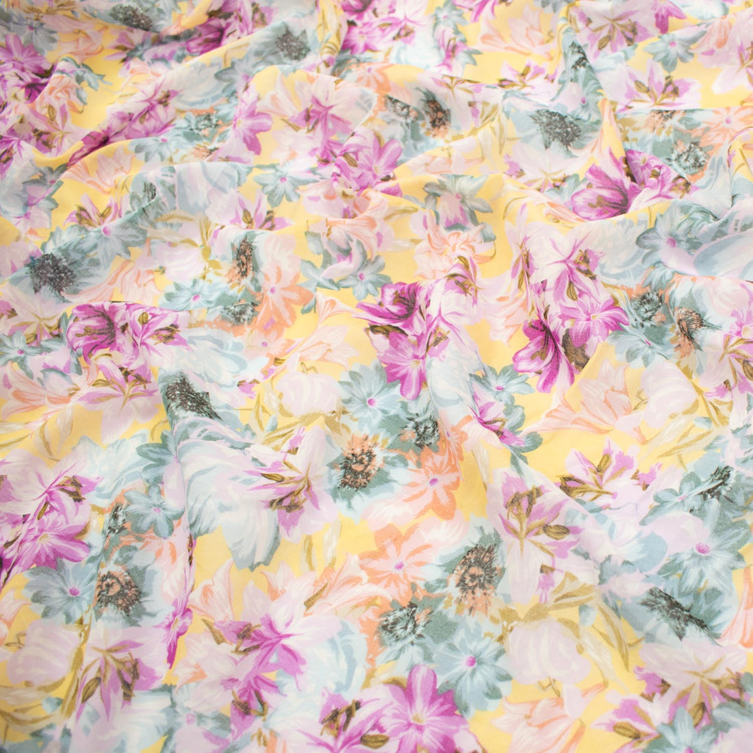 Japanese Pure Cotton Lawn Prints Design-208 Large Cerise Pink & Teal Flowers on Pale Yellow