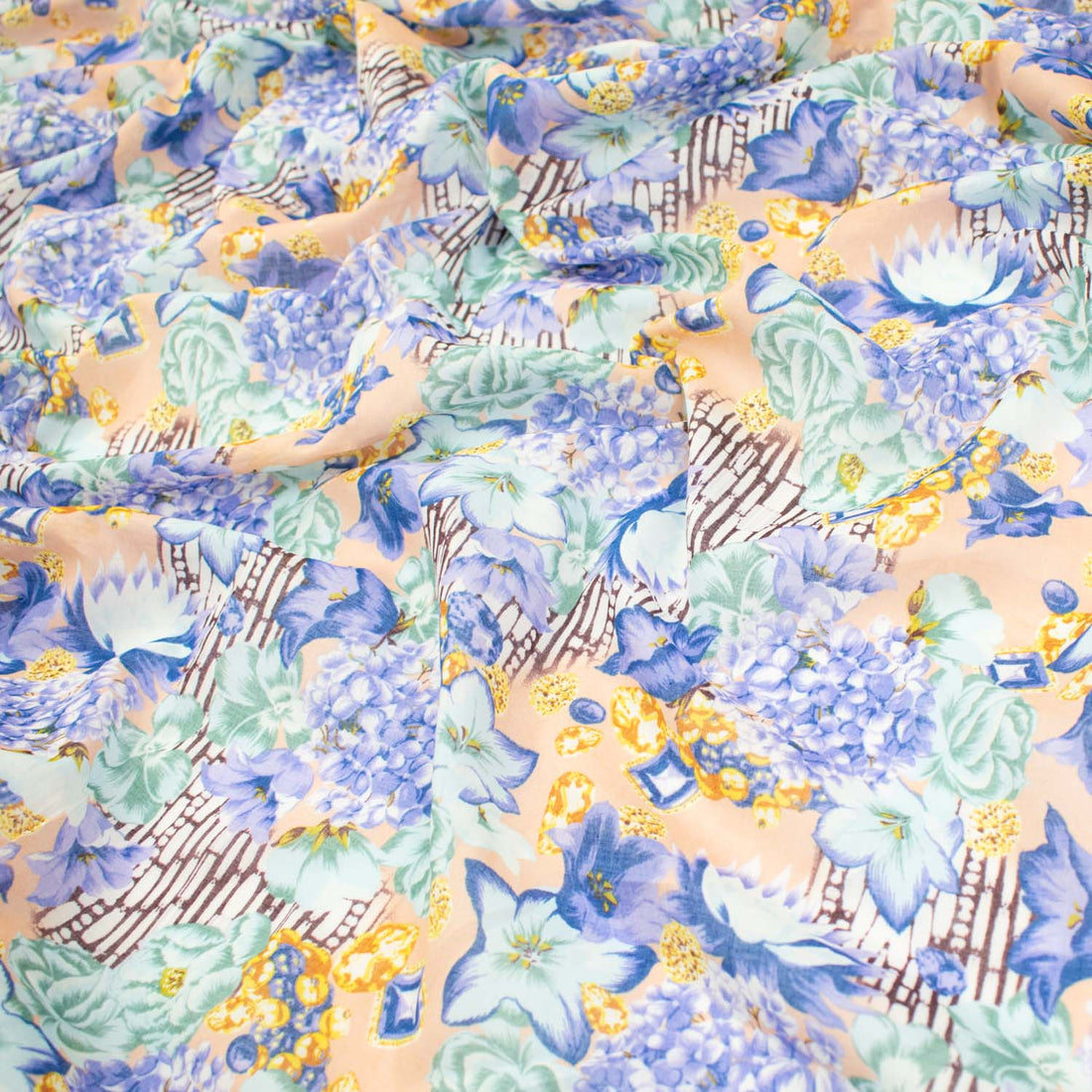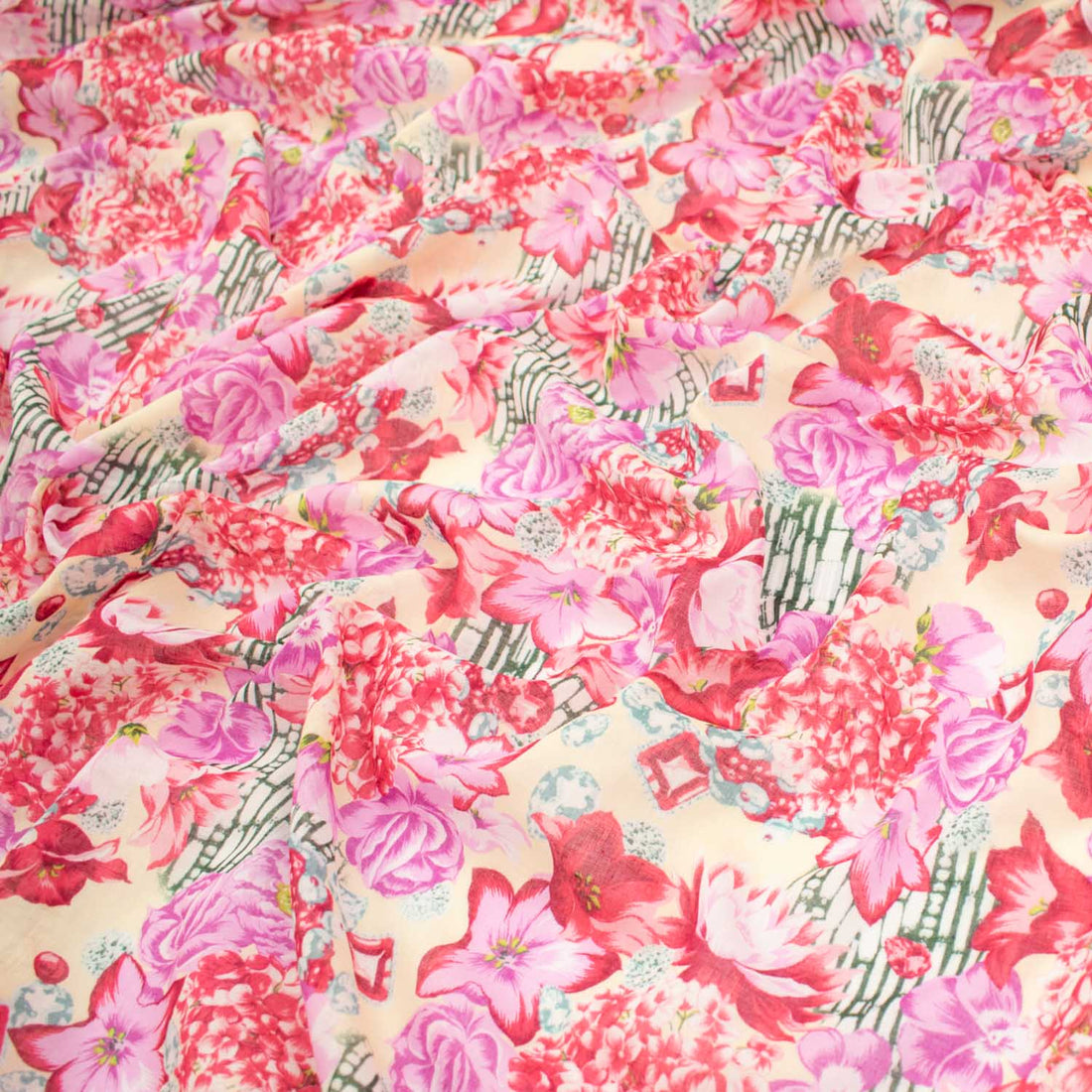 Japanese Pure Cotton Lawn Prints Design-198 Pink, Blue & Beige Flower Bloom