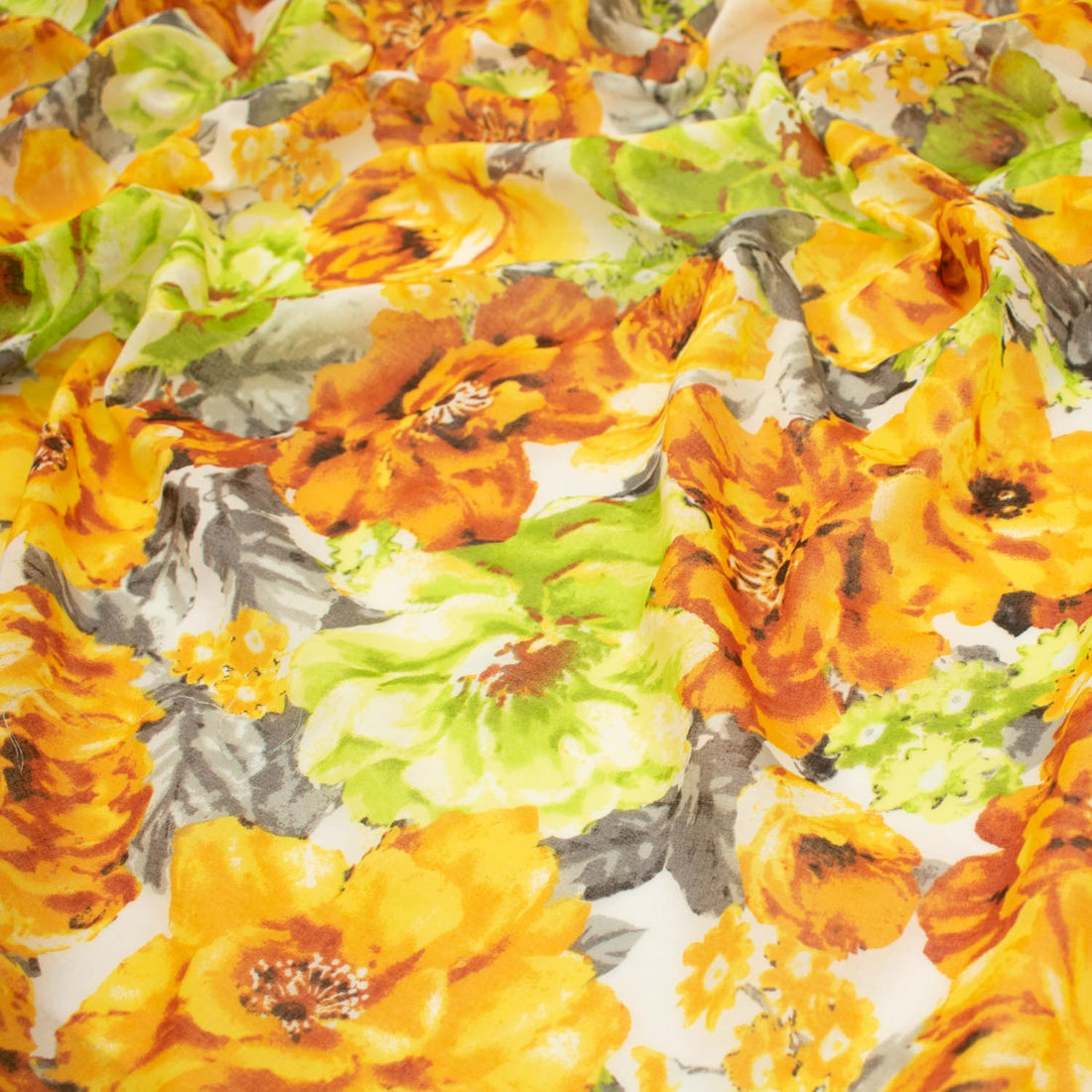 Japanese Pure Cotton Lawn Prints Design-164 Orange & Green Flower Bloom