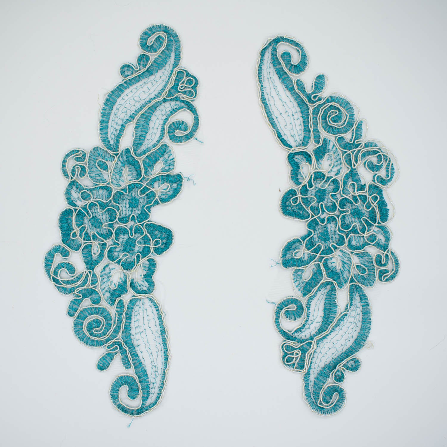 Teal Flower Embroidered Lace Applique Motif Design-MOT-U