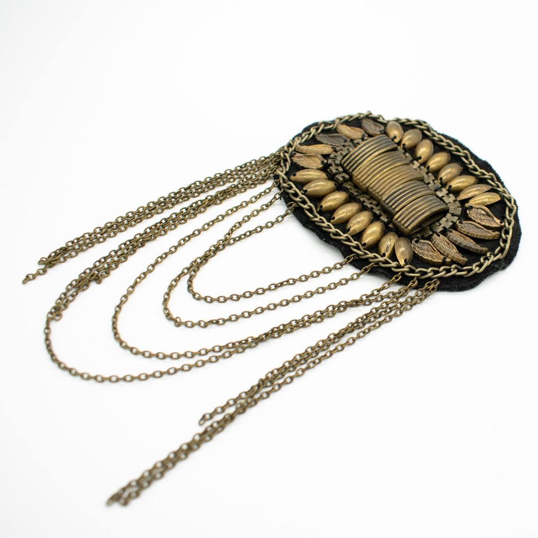 Blazer Shoulder Epaulet Metal Badge Motif with Rust Tassels Design-2