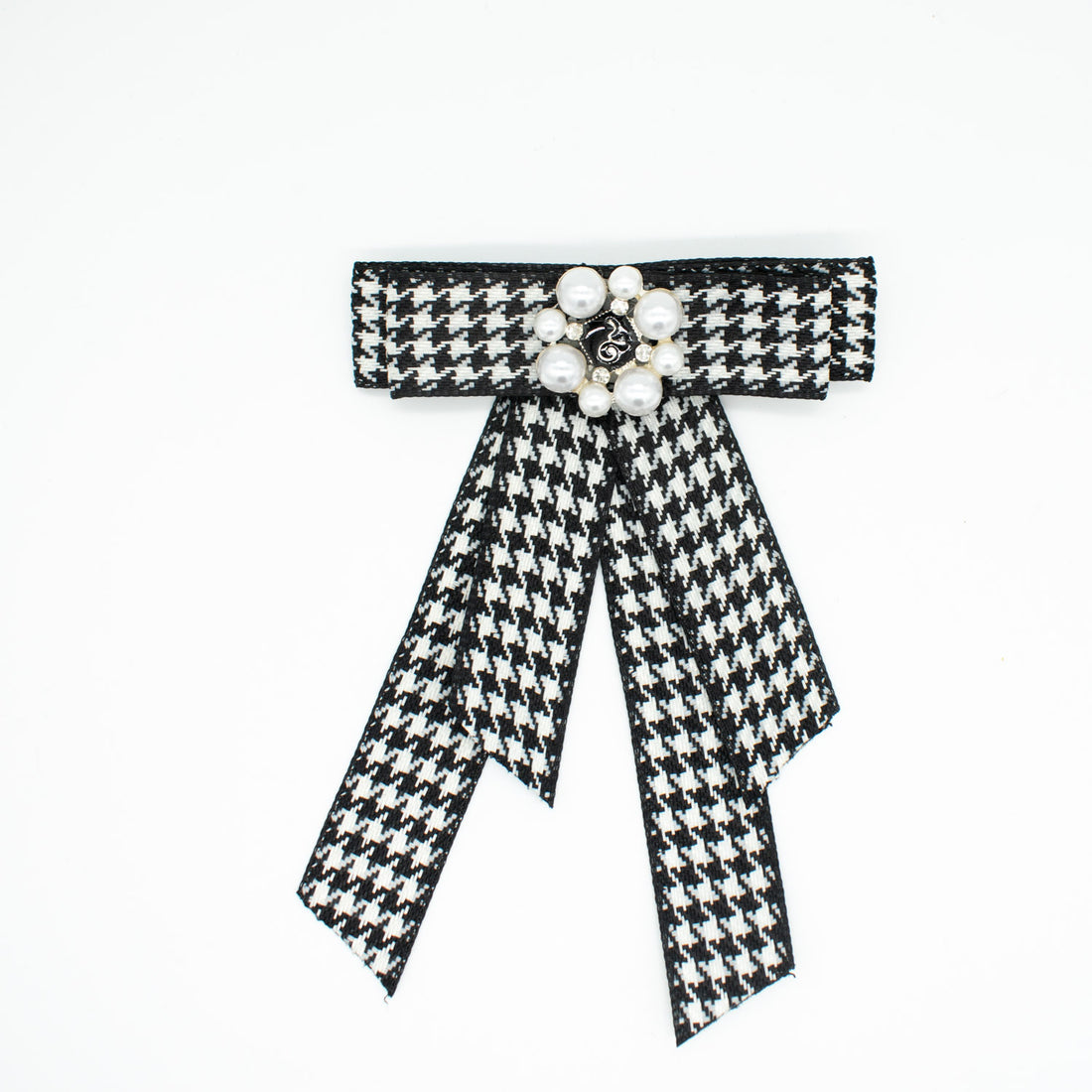 White & Black Houndstooth Pearl Dainty Bow Tie Brooch