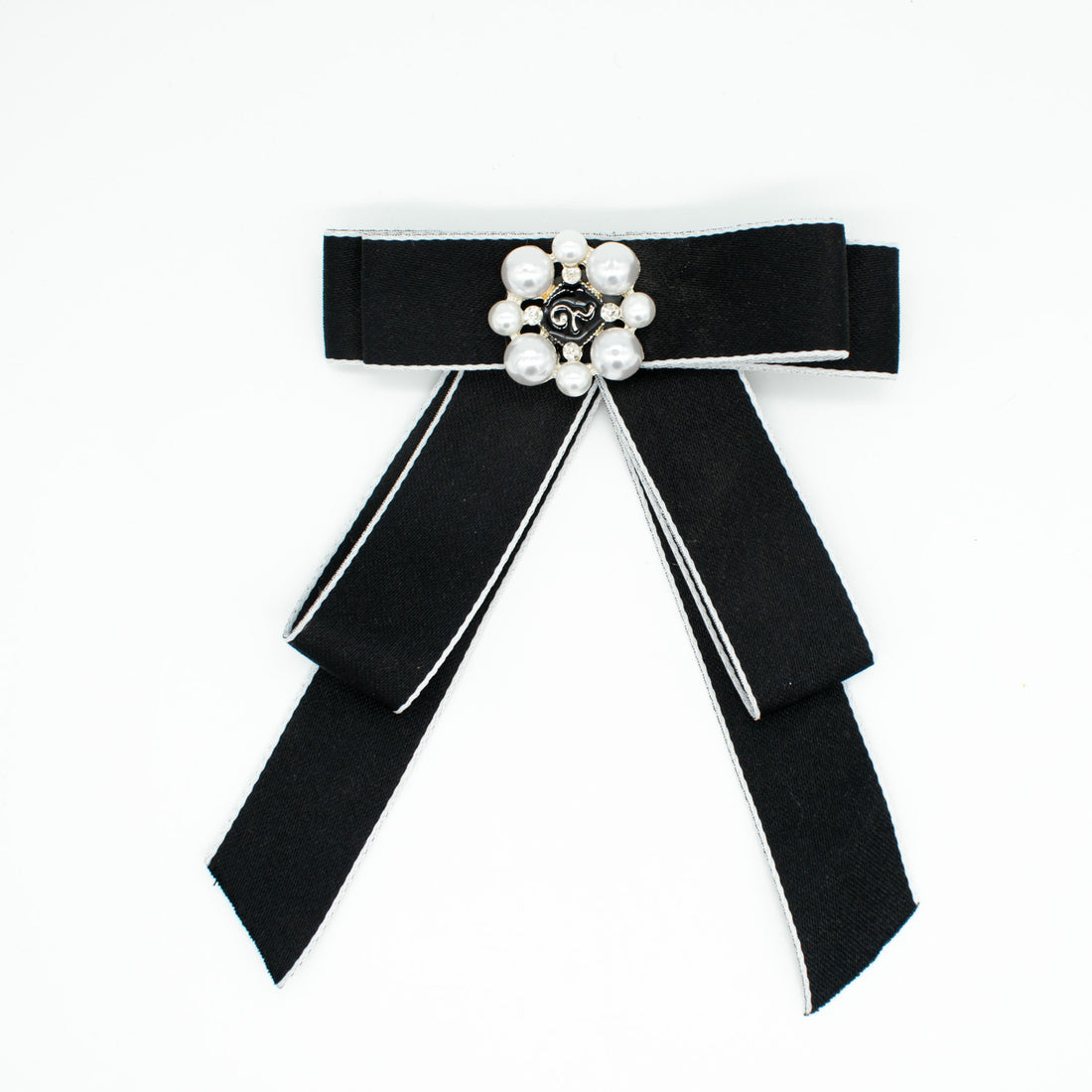 Pearl Dainty Bow Tie Brooch White & Black