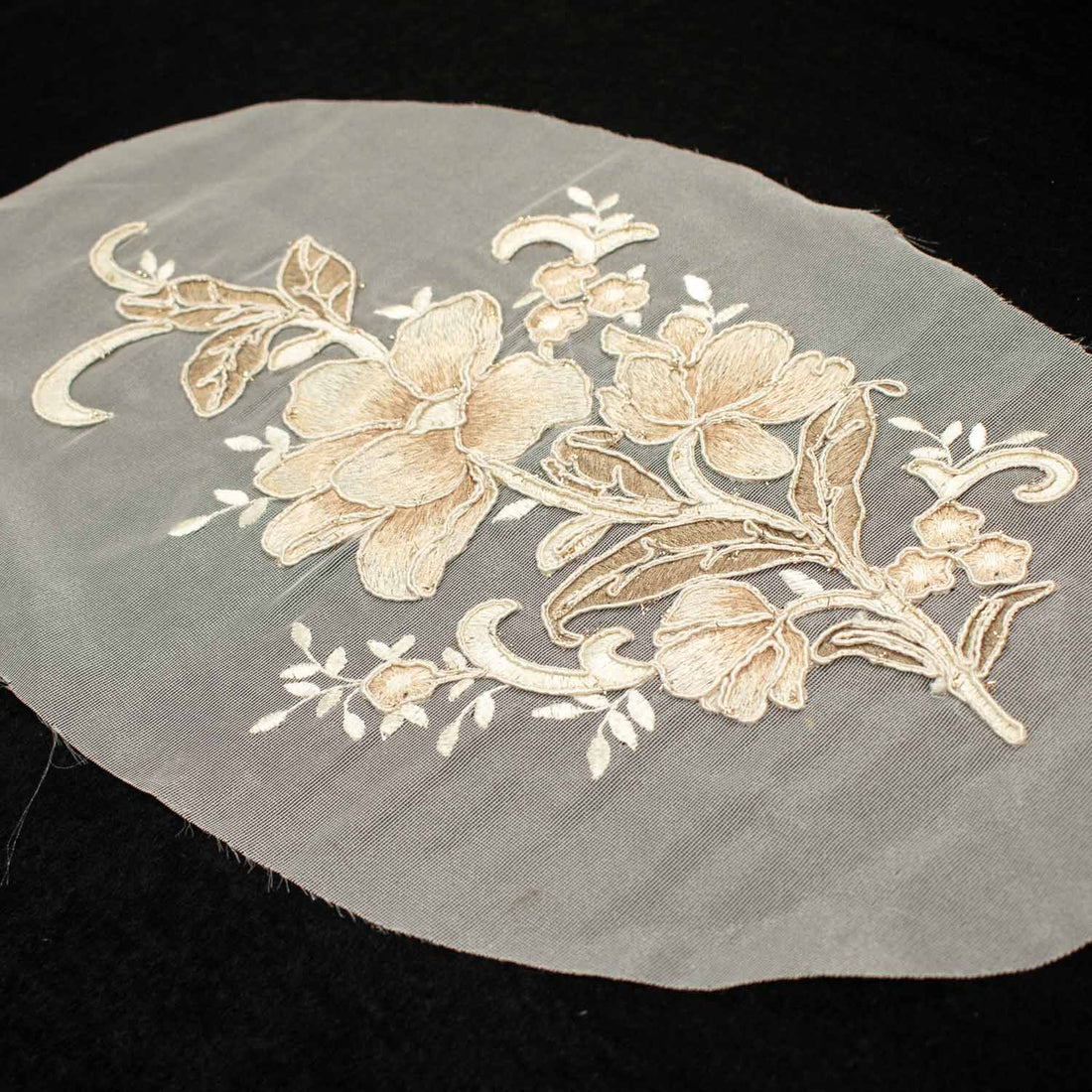 Beige Glitter Floral Cord Embroidered Motif