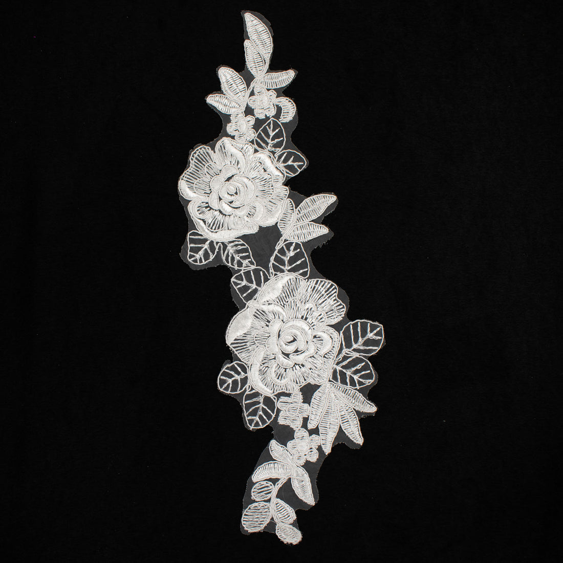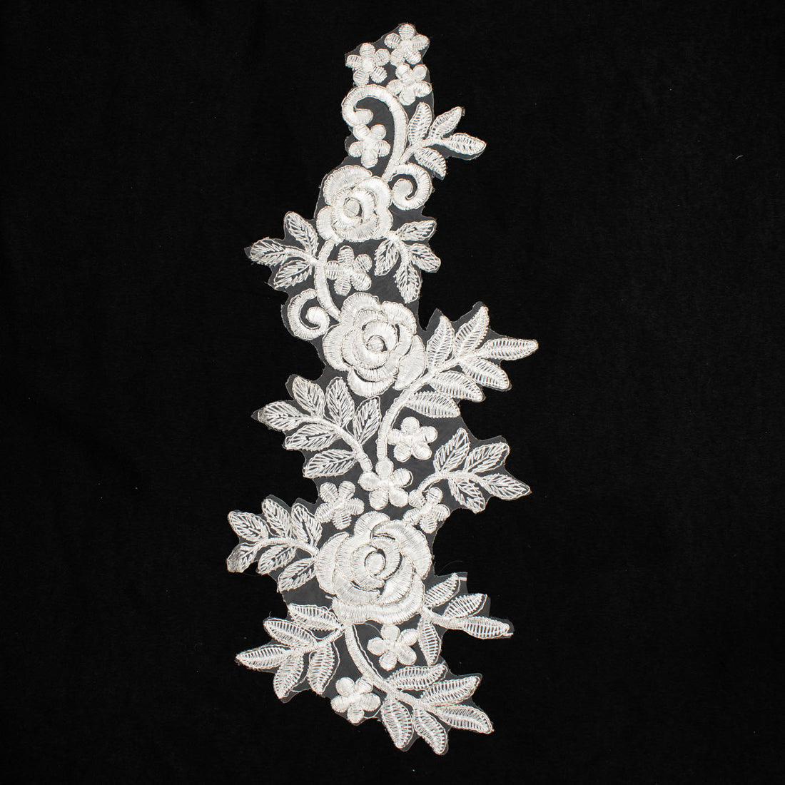White Flower Embroidered Lace Applique Motif Design-MOT-Q