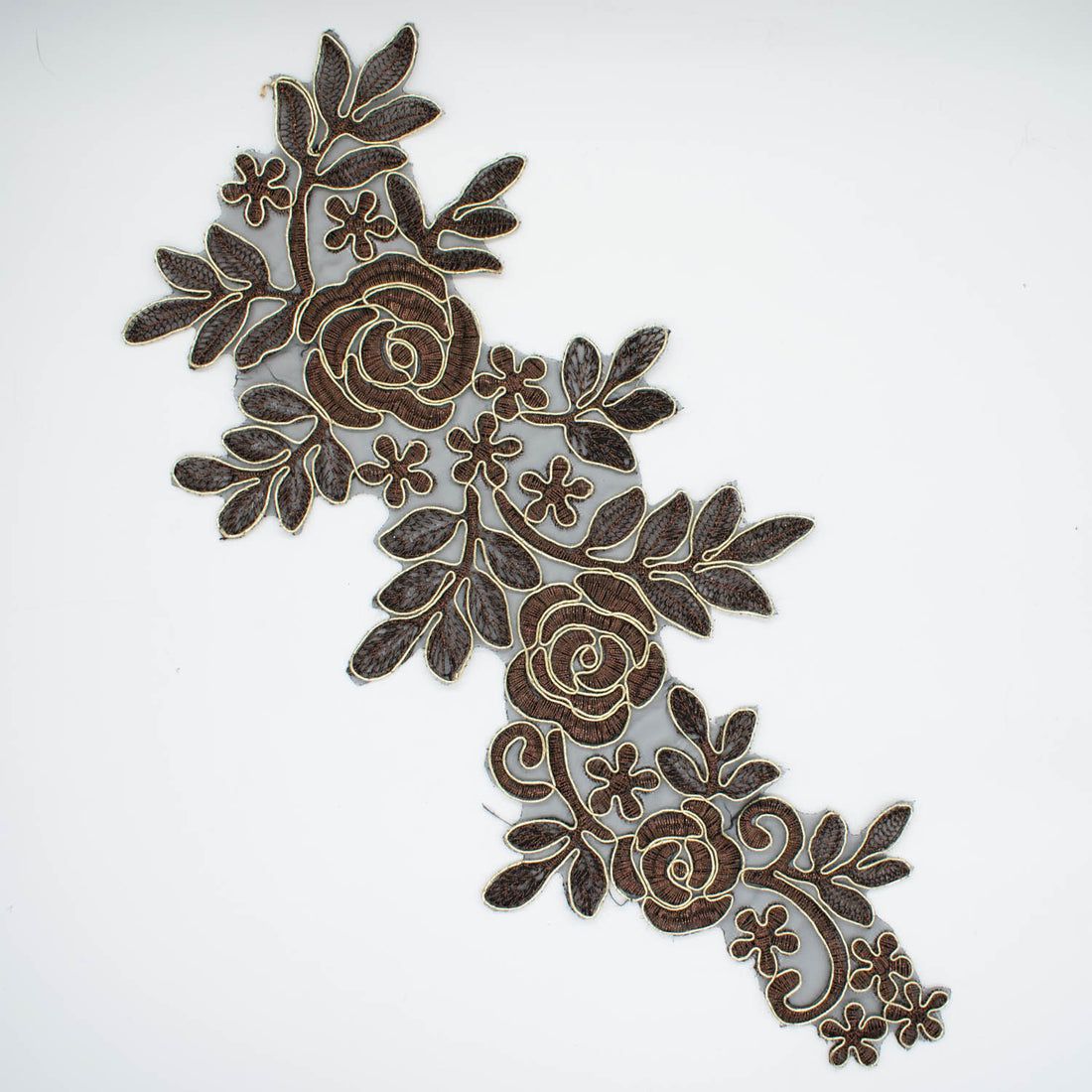 Brown Flower Embroidered Lace Applique Motif Design-MOT-N