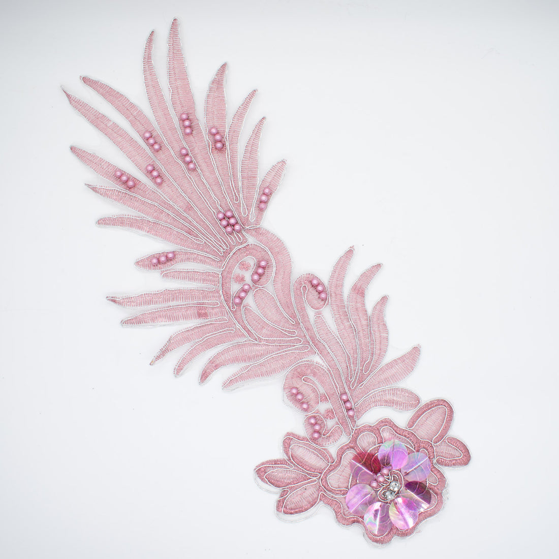 3D Flower Sequin & Pearl Embroidered Pink Applique Motif Design-MOT-O