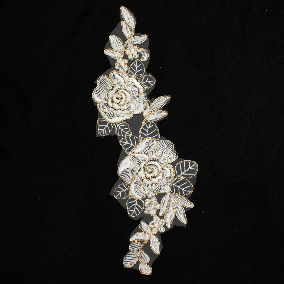 Gold & White Flower Embroidered Lace Applique Motif Design-MOT-Q
