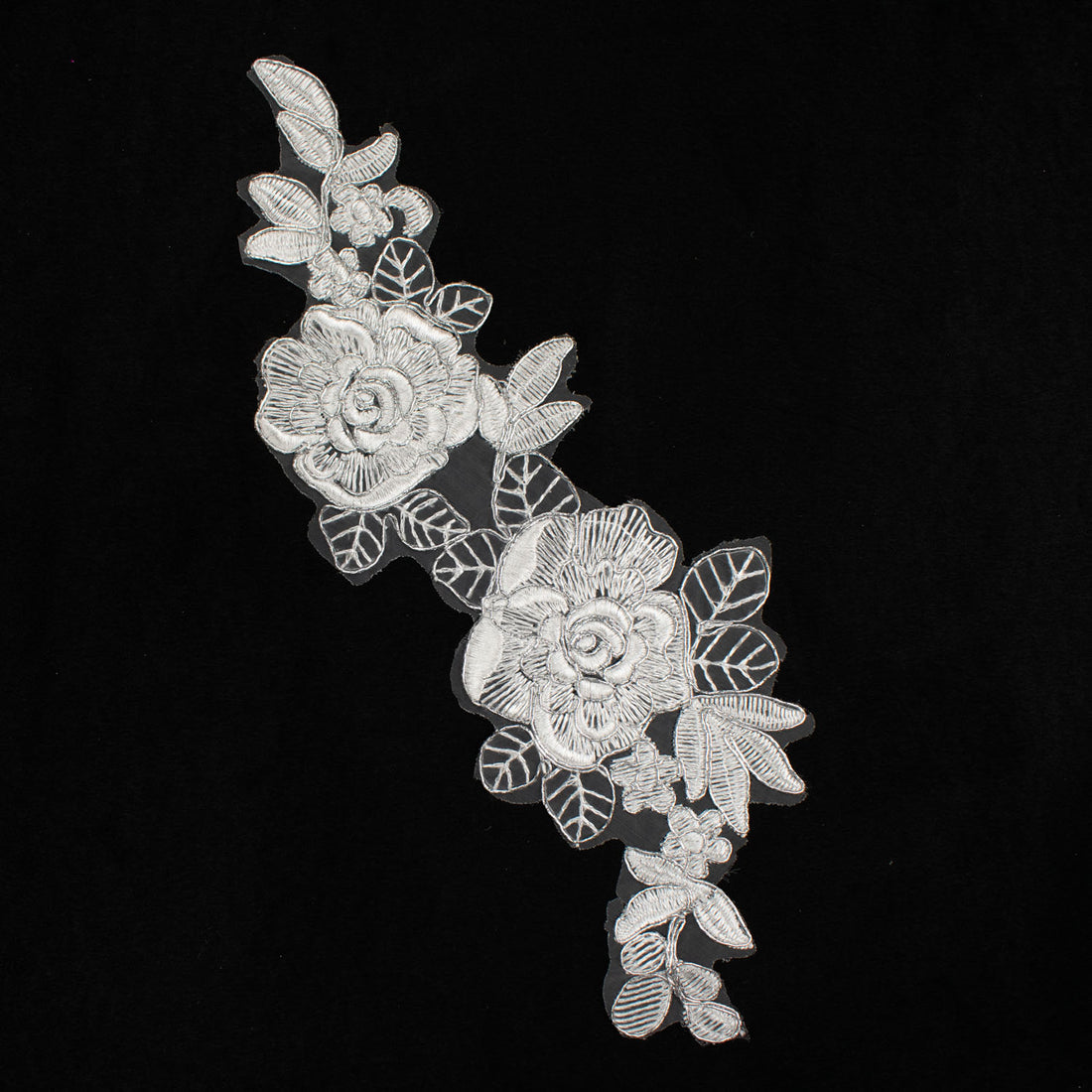 Silver & White Flower Embroidered Lace Applique Motif Design-MOT-N
