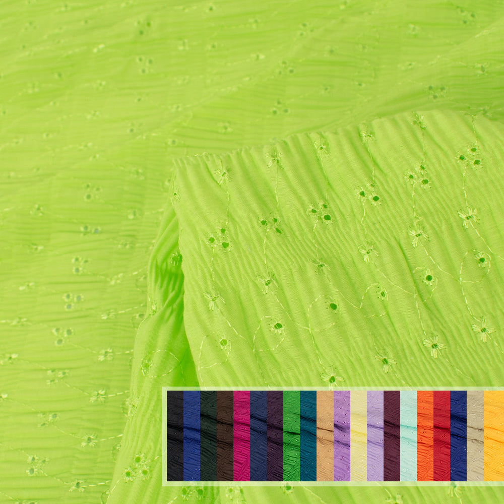 Composition: 100% CottonSize: 145cmWeight: 120GSM Discover the delicate and beautiful Broderie Anglaise 100% Cotton Fabric,...