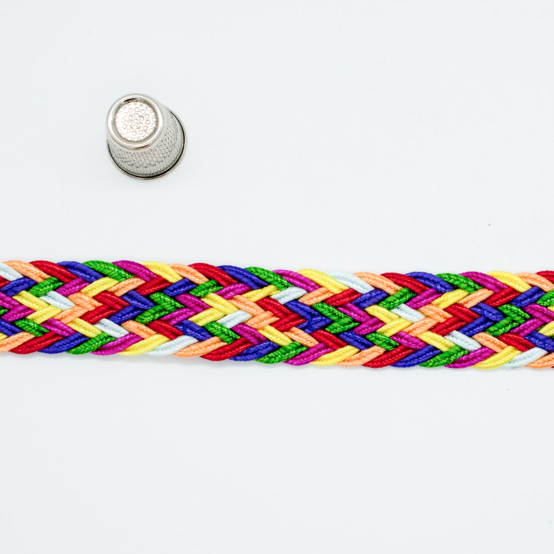 Rainbow/multicolour Flag trim can be used for bag making and to decorate clothing, craft and upholstery items.