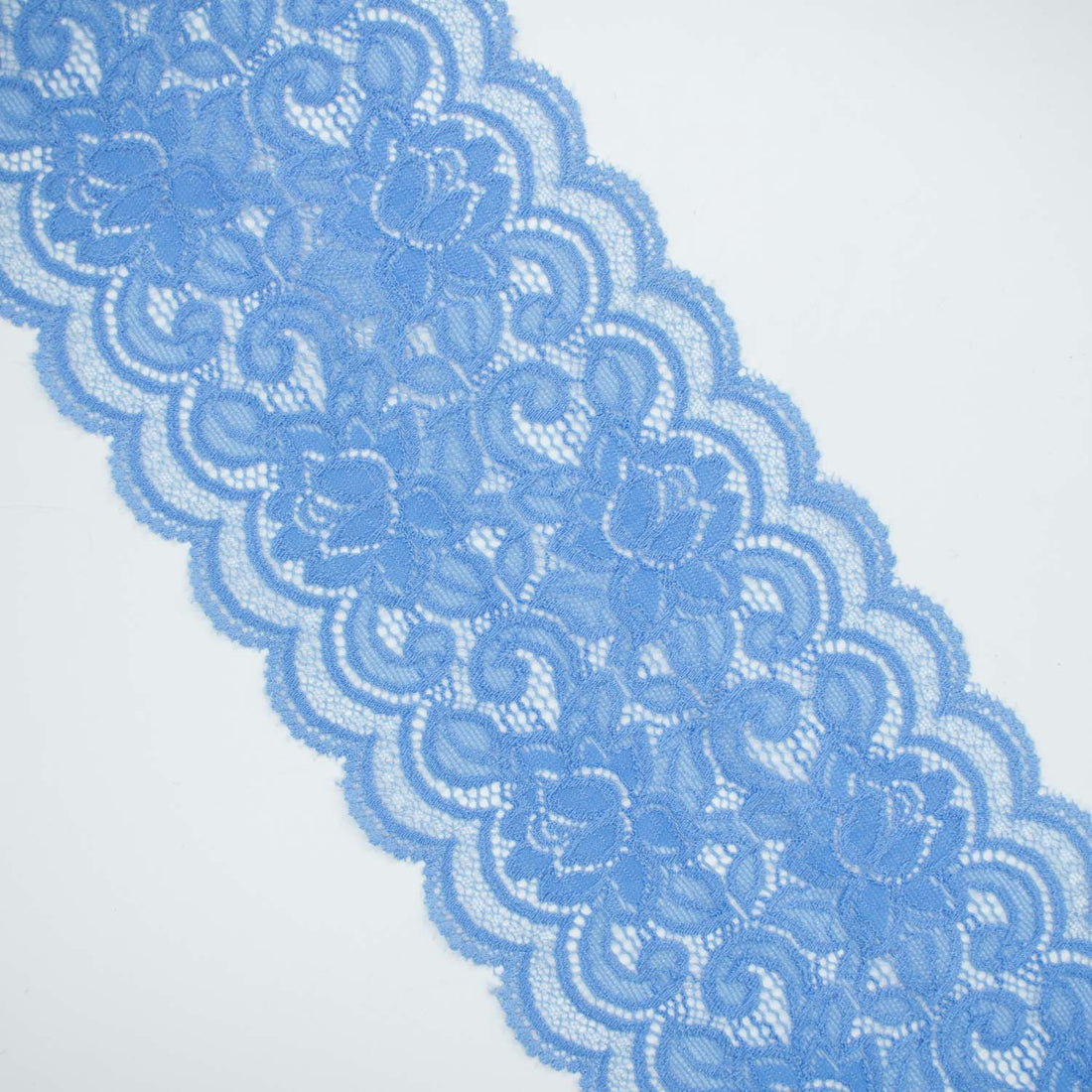 Blue Floral Stretch Raschel Lace Trim 150mm